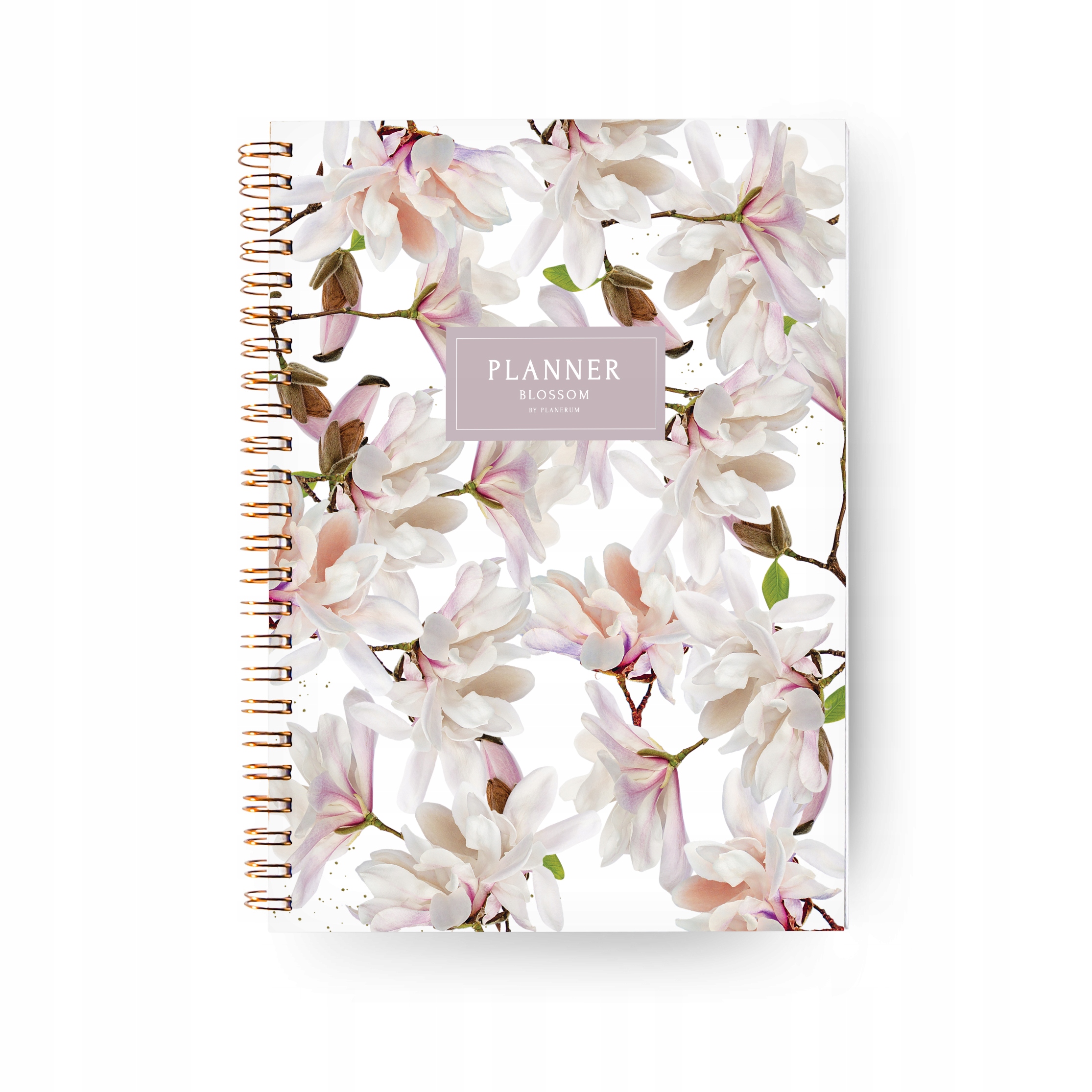 Недатований щоденник від Planerum — це унікальний планувальник на спіралі з візерунком Квітучі магнолії.