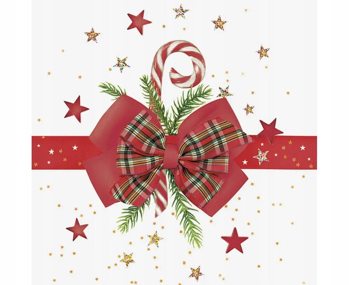 Принесіть у свій дім святкову атмосферу з елегантними паперовими серветками! Наші серветки «Ромашка» з різдвяним бантом і мотивом цукеркової тростини є ідеальним вибором для будь-якої вечірки або сімейного збору під час різдвяного сезону.