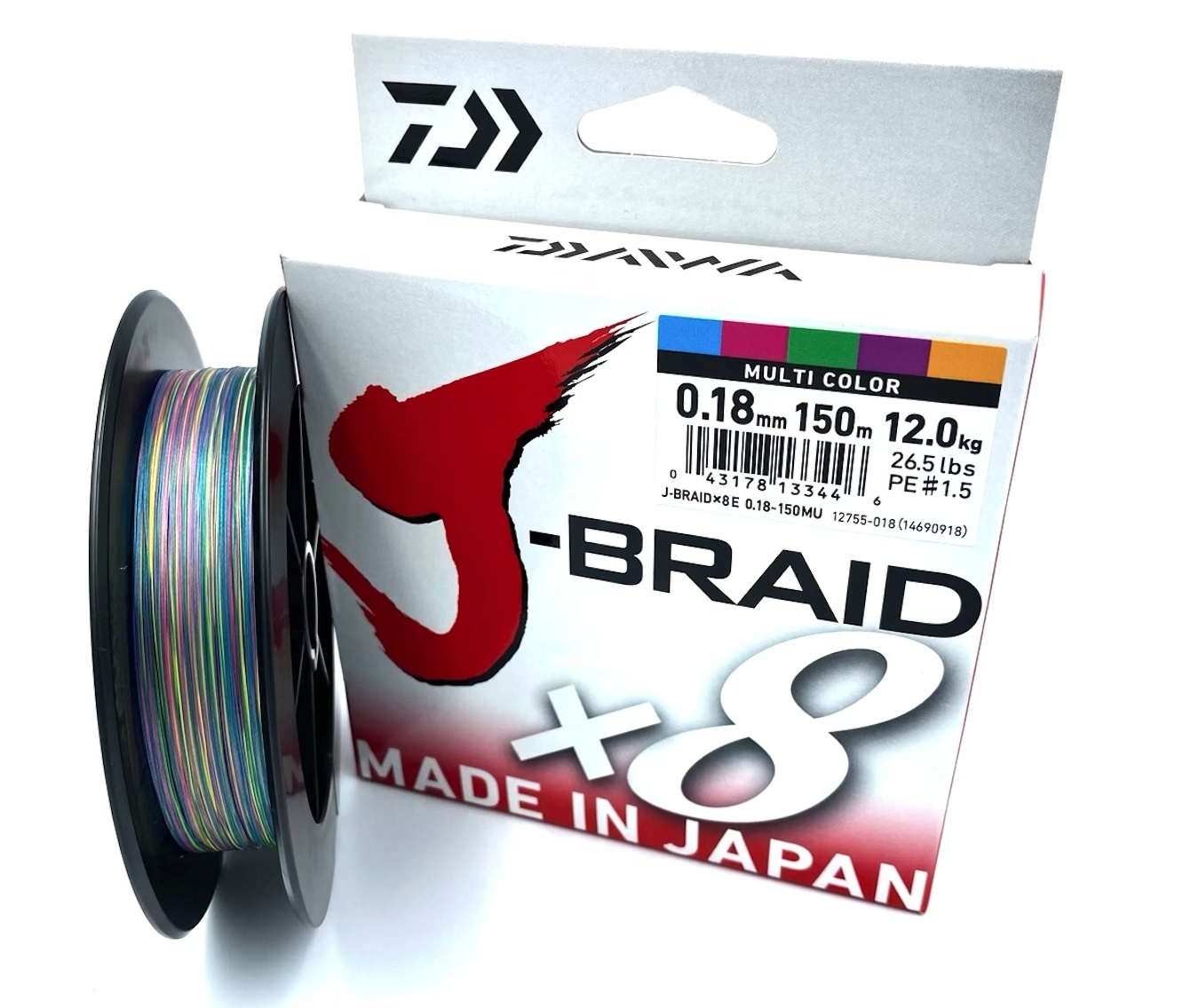 DAIWA J-BRAID X8 0.18MM 150M 12KG MULTICOLOR