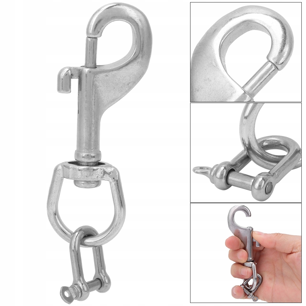1, використовується для прив’язування, підйому та кріплення кабелів у відповідних місцях на ремінь безпеки, поясі противаги чи іншому водолазному спорядженні. 2, виготовлений з високоякісного матеріалу, стійкий до корозії, високої міцності, міцний, простий у використанні. 3. Одностороння застібка з великим поворотним отвором. 4. Використовується для надійного кріплення ліхтарика/ліхтарика/камери до ременя або BCD. 5, чудовий аксесуар для підводного дайвінгу, вільного дайвінгу, мотузка для весла на байдарці тощо.