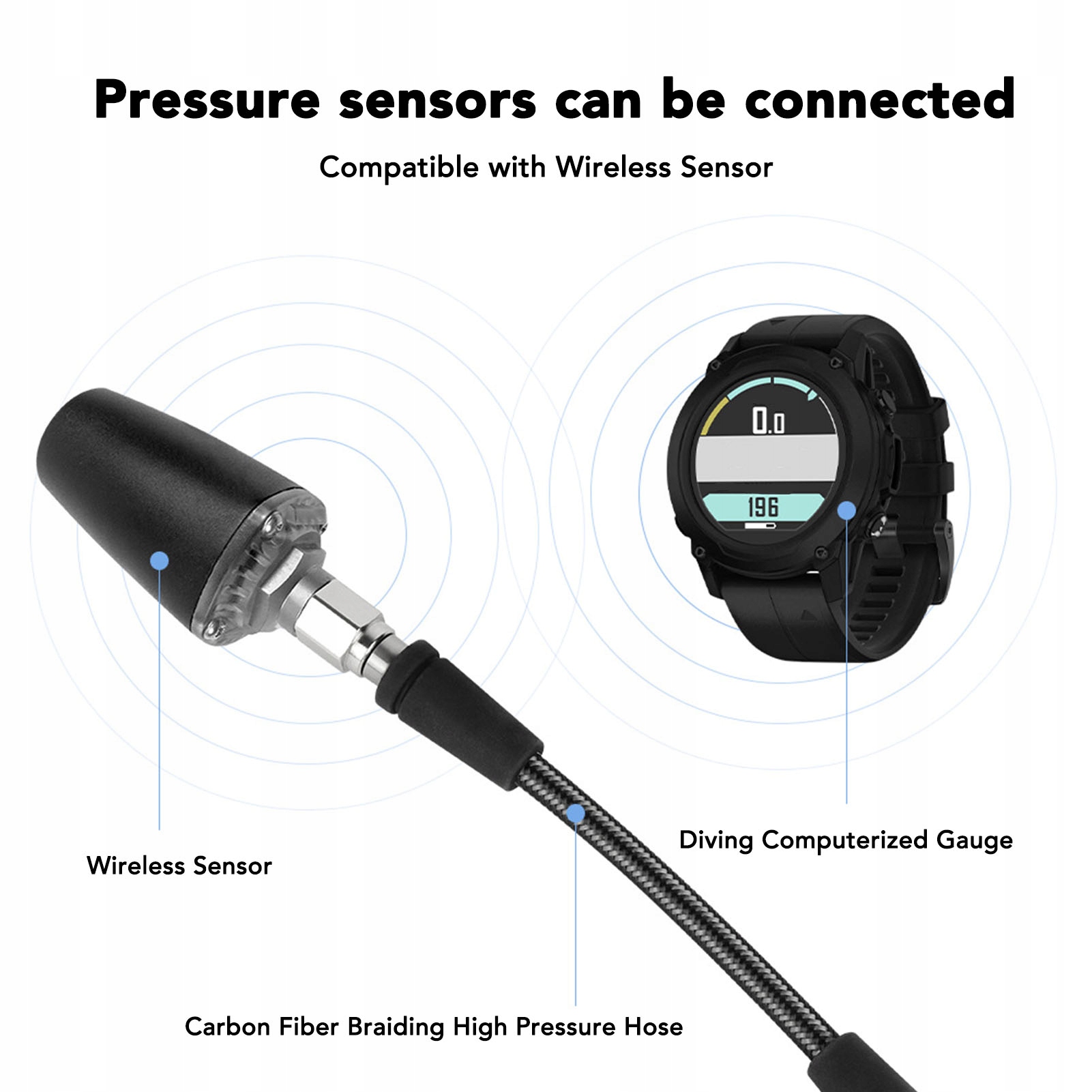 2. Універсальний: сумісний з будь-яким інтерфейсом дайвінгу, що містить нитки 7/16-20UNF. Він підключається до датчиків тиску і сумісний з бездротовими датчиками.