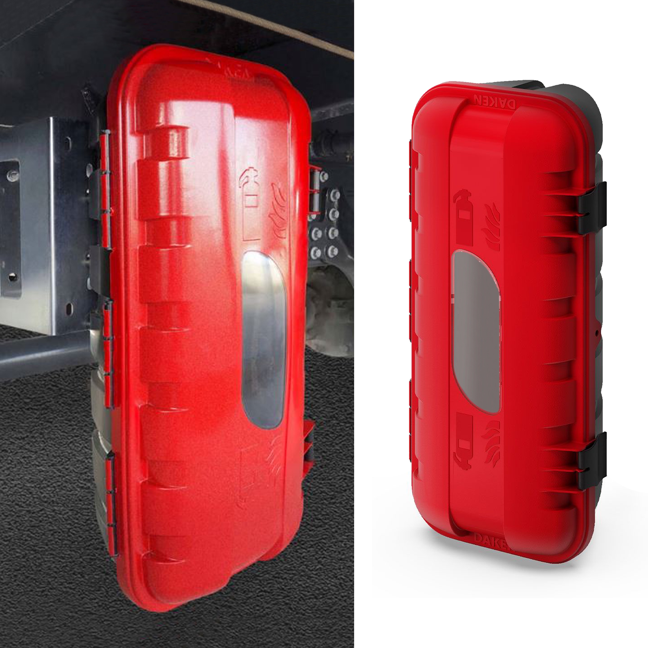 ✅ Якісний ящик/контейнер для вогнегасників 6кг максимальний діаметр Ø160мм від італійського виробника DAKEN серії STRIKE. Модель використовується на напівпричепах, евакуаторах, інших транспортних засобах доставки та всередині будівель.