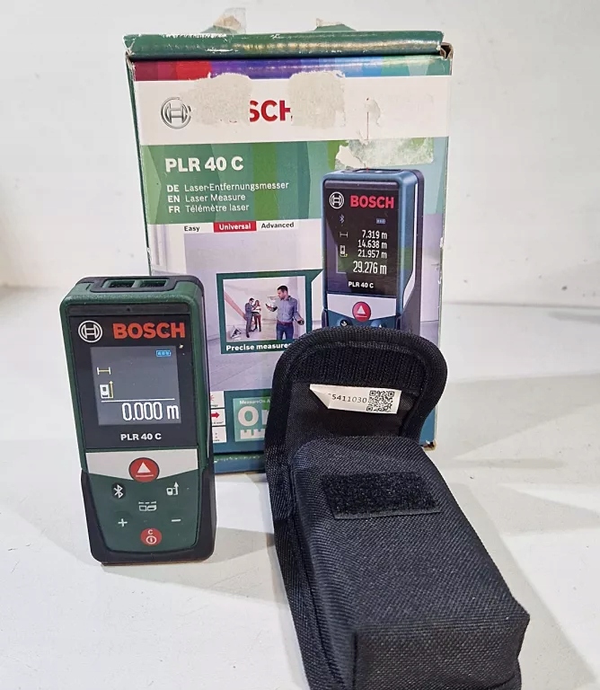 Bosch PLR 40 C — це сучасний лазерний далекомір, який поєднує в собі точність вимірювань із комфортом використання та інтуїтивно зрозумілим інтерфейсом. Завдяки вбудованому модулю Bluetooth дозволяє швидко передавати результати в мобільний додаток, що покращує планування та документування роботи. Пристрій вимірює з точністю до 2 мм на відстані до 40 метрів, пропонуючи багато функцій, таких як вимірювання довжини, площі, об'єму та непрямі вимірювання завдяки вбудованому датчику нахилу. Кольоровий сенсорний дисплей і компактний міцний корпус роблять його ідеальним інструментом як для ентузіастів DIY, так і для професіоналів.