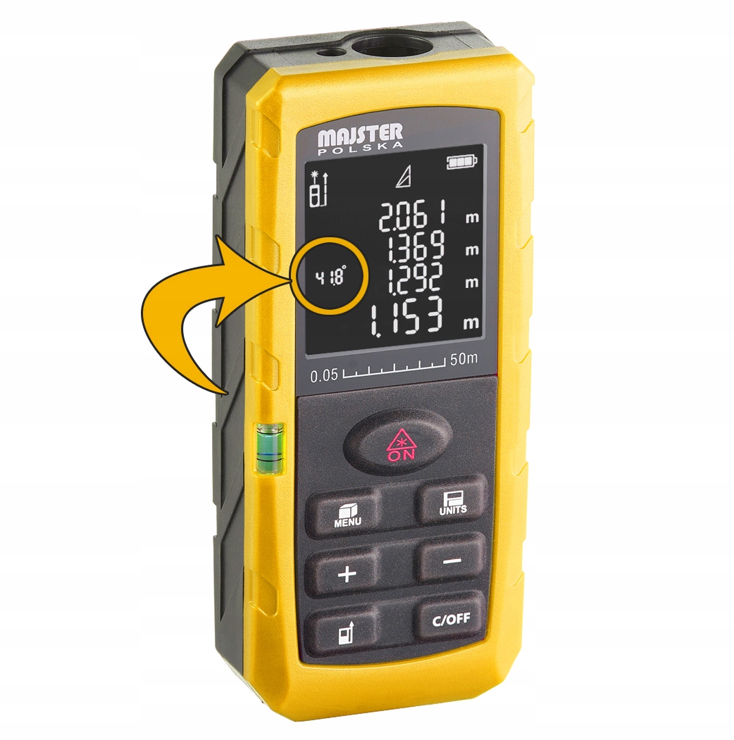 50-метровий лазерний далекомір MAJSTER POLSKA. Сучасний дизайн, дуже висока якість виготовлення та 100% повторюваність вимірювань.