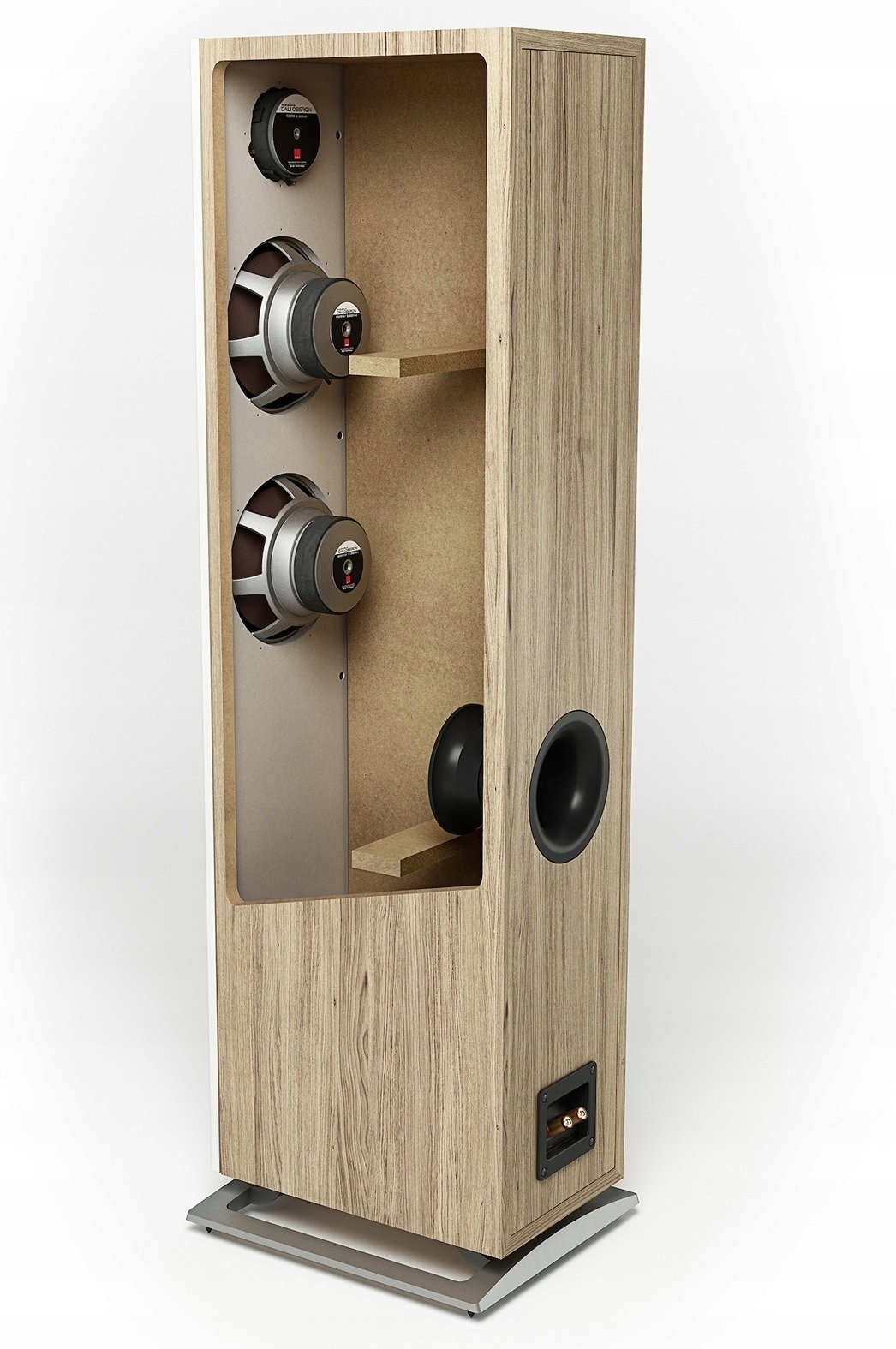 Басові порти були розміщені на задній панелі корпусу OBERON 5, оптимізувавши інтеграцію з кімнатою та використавши стіну для покращення продуктивності баса.