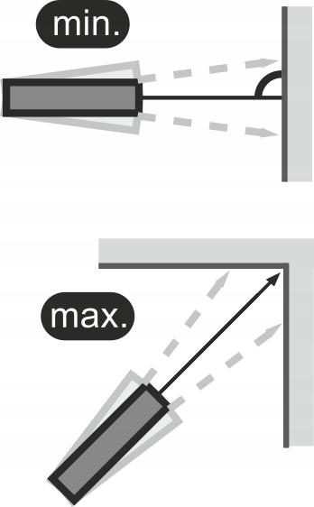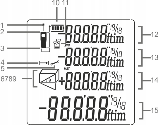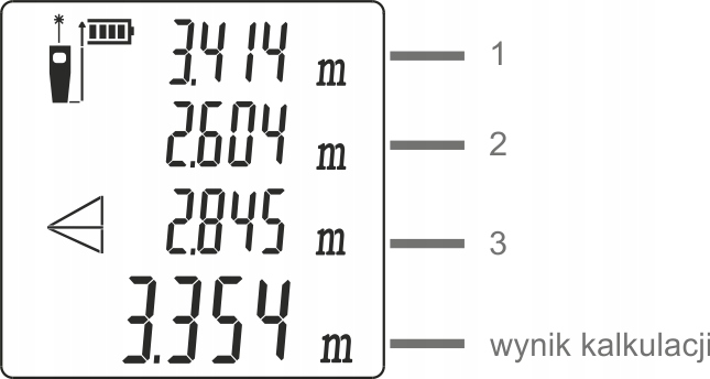 Натисніть кнопку вибору режиму вимірювання тричі, щоб активувати функцію (на дисплеї з’явиться символ трикутника). Зробіть два вимірювання в порядку, як показано на малюнку, в результаті чого висота об’єкта буде розрахована пристроєм автоматично.