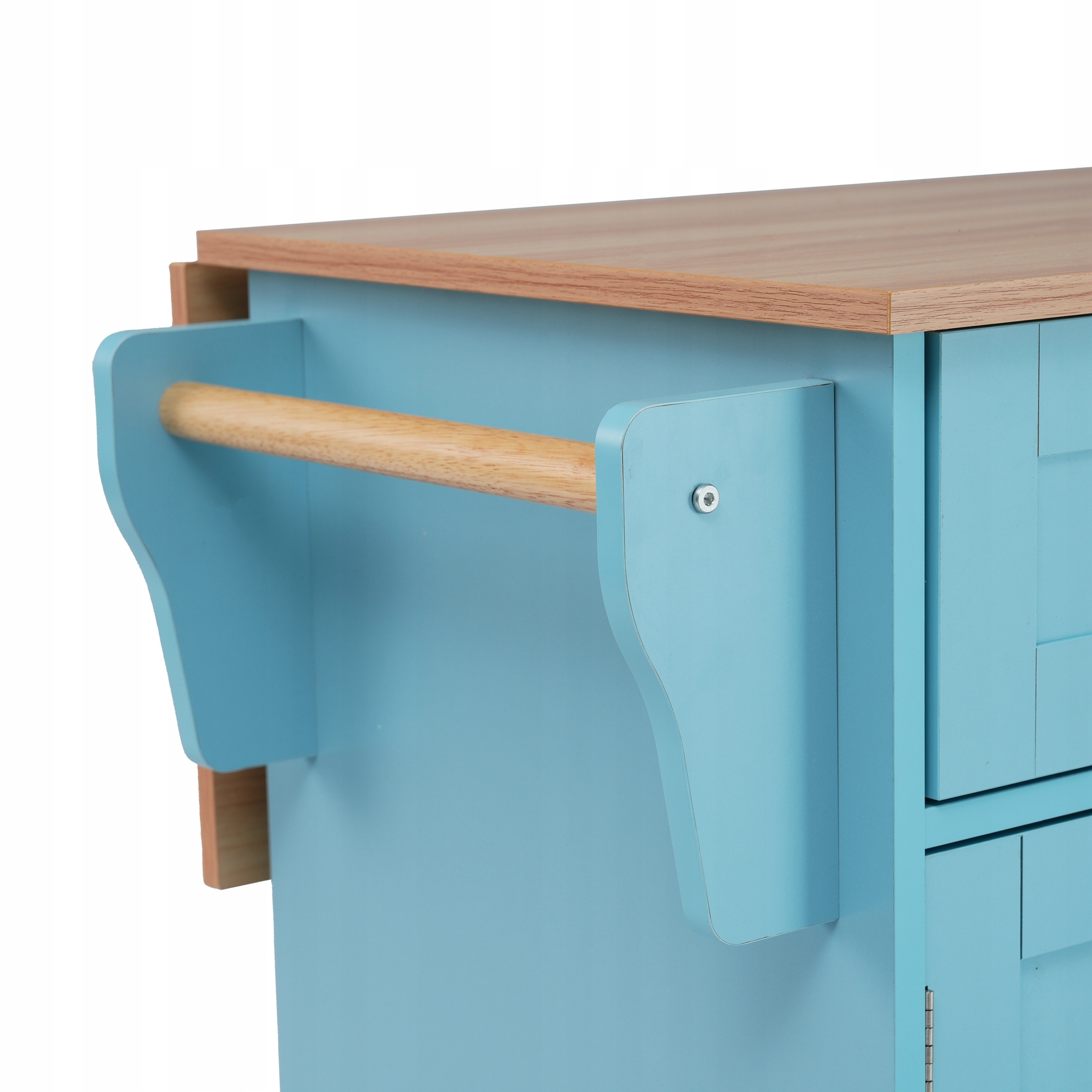 їдальня/сервант 129x46 (71) x91,5 см, суцільна дерев’яна верхівка + синя шафа/складка верхівки/конструкція дверей для зберігання/колеса/змінні ноги