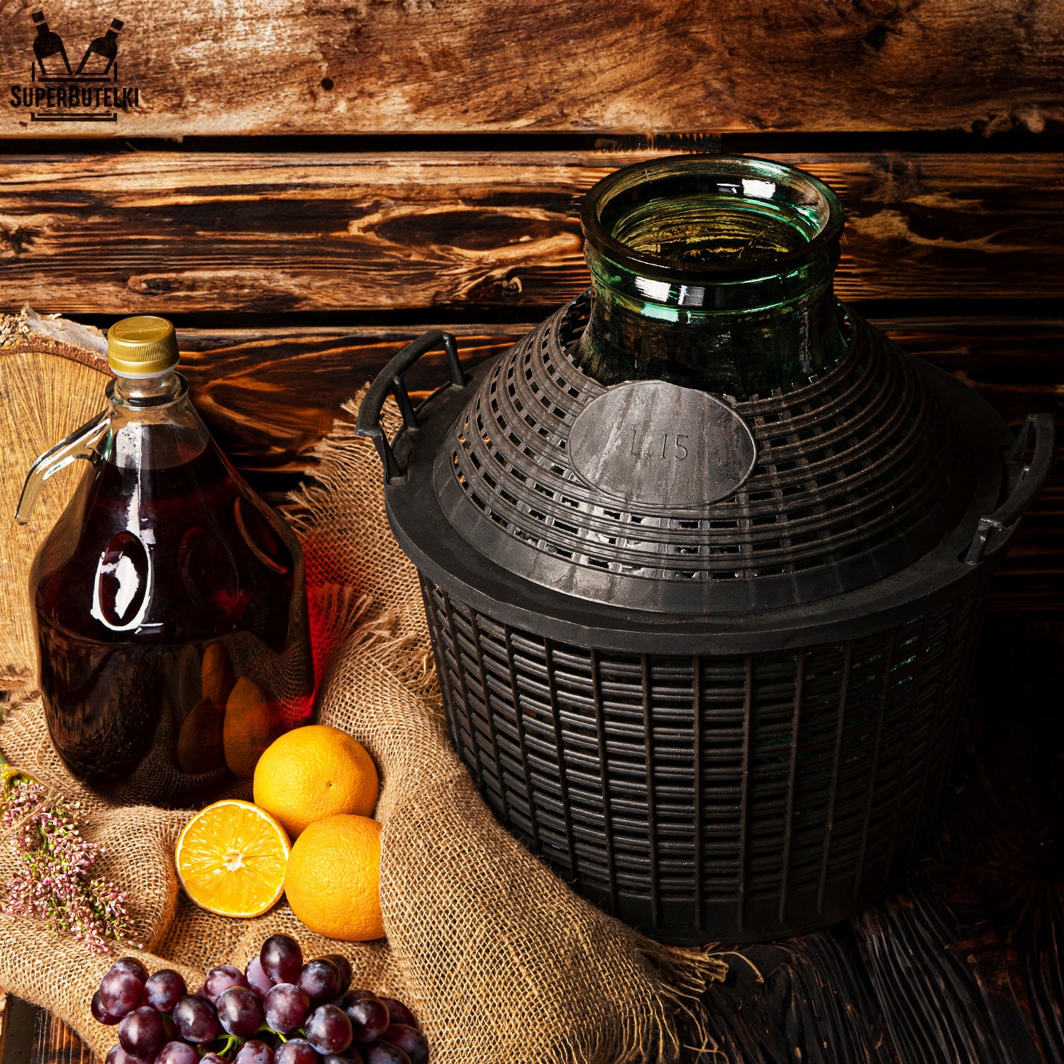 15-літровий галон із широким отвором виготовлено з міцного та стійкого до пошкоджень матеріалу, що гарантує тривалий термін служби продукту. Завдяки своєму естетичному вигляду він ідеально вписується в інтер'єр винних льохів або комор.