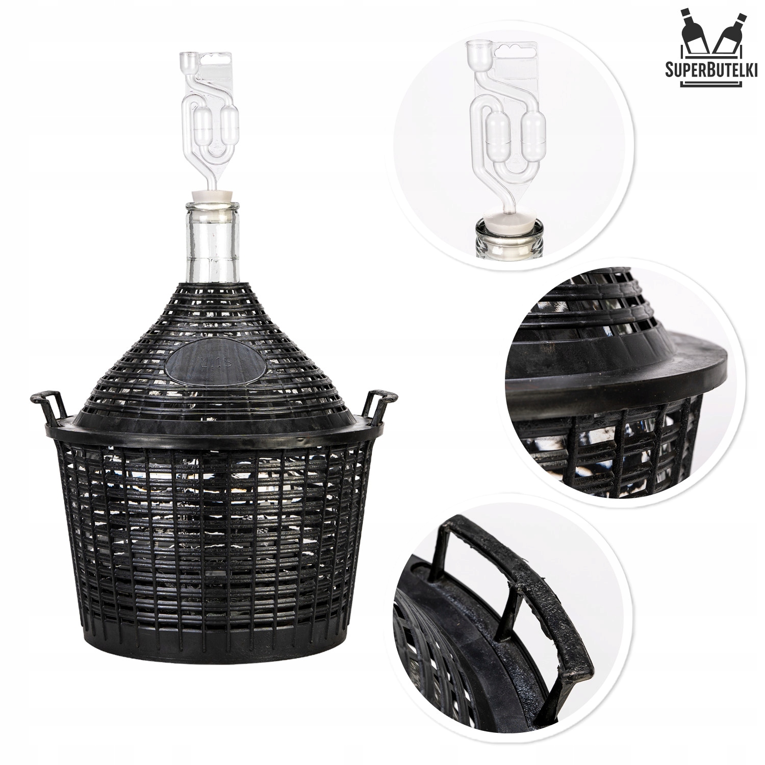Скляна КУЛЯ 15 л з пластиковою опліткою та ПРОБКОВОЮ ПРОБКОЮ + ФЕРМЕНТАЦІЙНА ТРУБА.