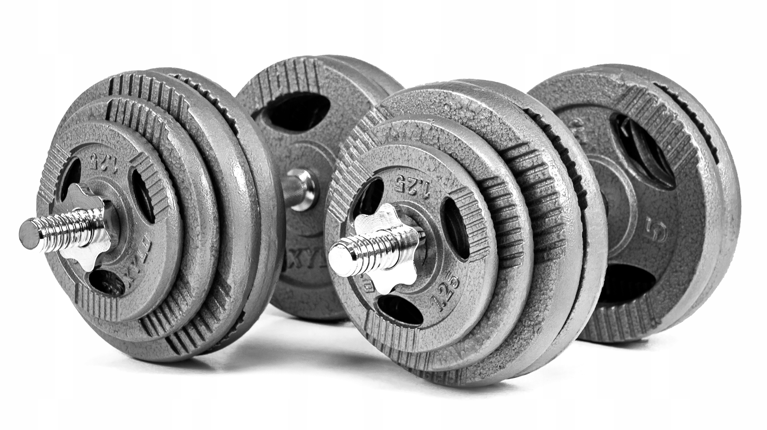 У набір входять чавунні пластини XYLO-Line в наймоднішому на даний момент дизайні. Правильно підібрана конфігурація дозволяє спортсмену регулювати вагу вправи відповідно до поточних схильностей або типу тренування (скульптура/маса).