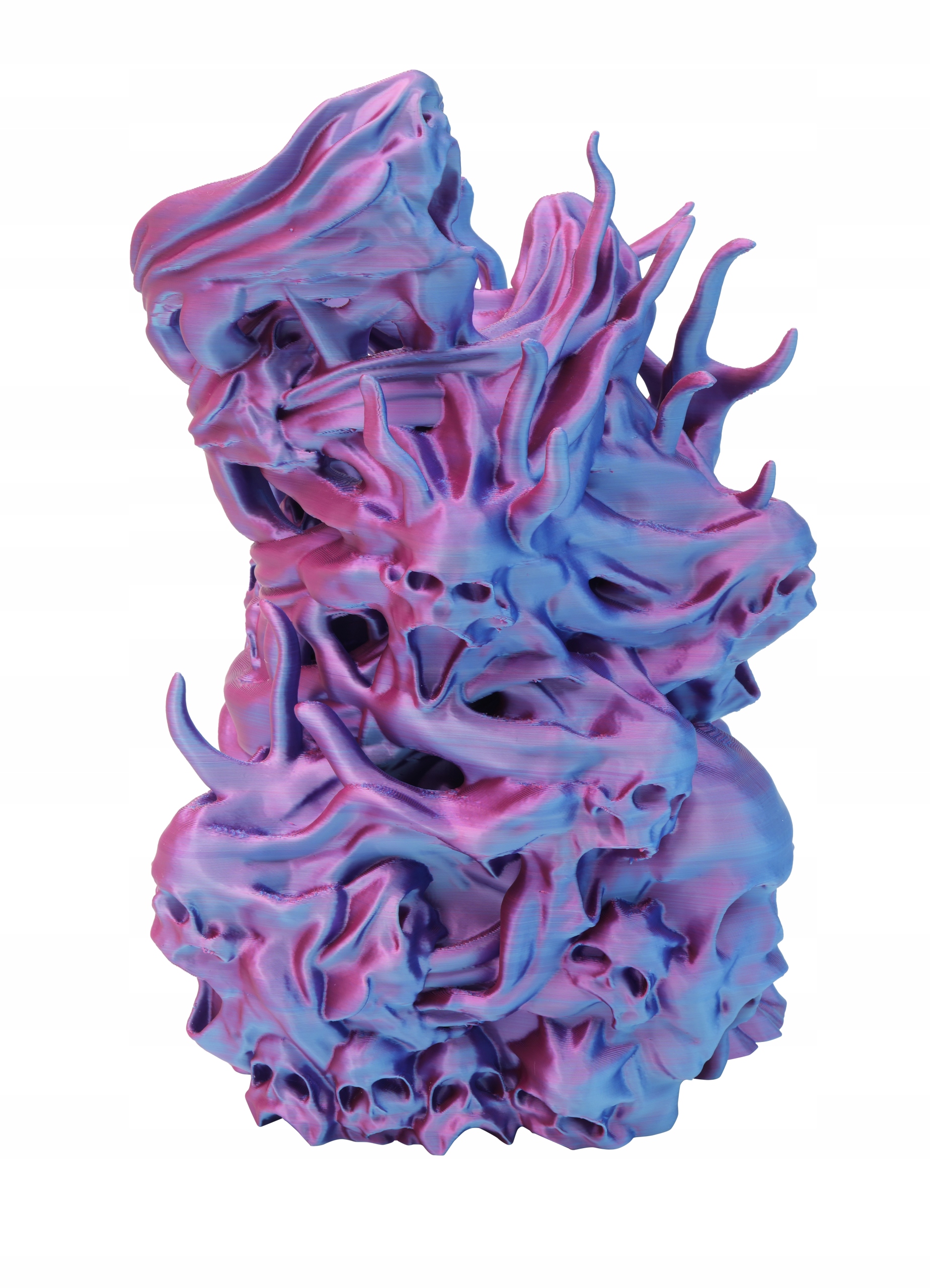Друк зроблено з PLA матеріал, який біологічно розкладається і забезпечує дуже високу якість, але не підходить для надзвичайно високих температур - ми радимо не залишати відбитки в дуже теплих місцях - наприклад, у сонячному автомобілі, це може призвести до їх деформації. p>