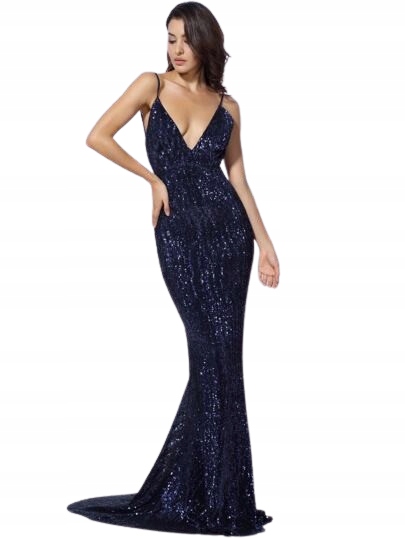 DAMSKA SUKIENKA WIECZOROWA GRANATOWA MAXI M V3D