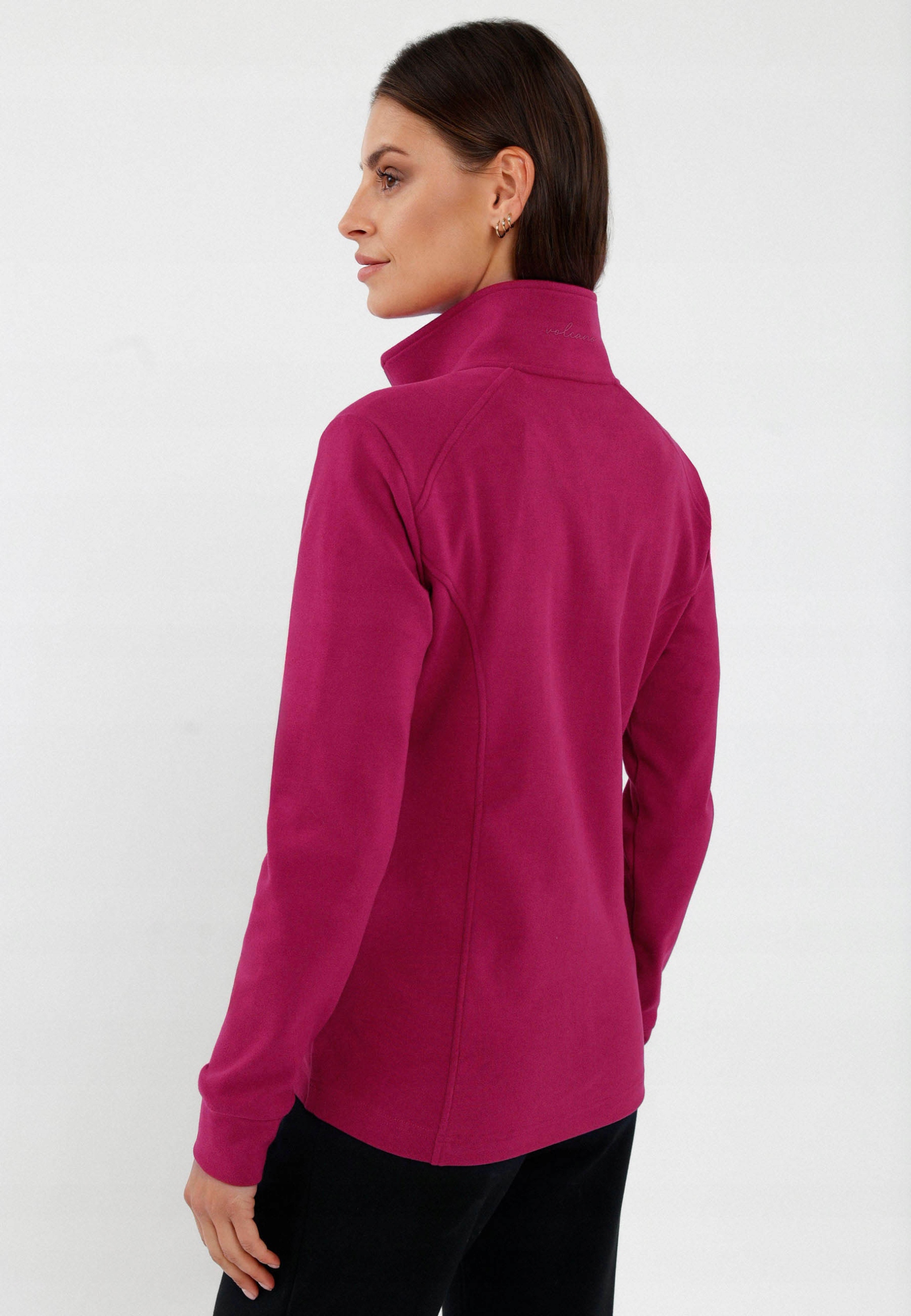 F-Moya-жіноча толстовка, яка була зроблена з гнучкої трикотажної тканини , закінчена зовні з легкою банкою . Перевага цього матеріалу полягає в тому, що він не поглинає воду, саме тому вона не страшна дощ і легкий дощ. Крім того, він швидко висихає, це легкий і приємний на дотик . Додавання еластану означає, що толстовка цієї полярної жінки добре розташована на тілі і не обмежує рухи. Folece Feece Feece Fece має комір, а замість капюшона. Цей варіант дозволяє захистити шию від вітру та холоду. Приємний матеріал обгортає шию, як приталений шарф.
