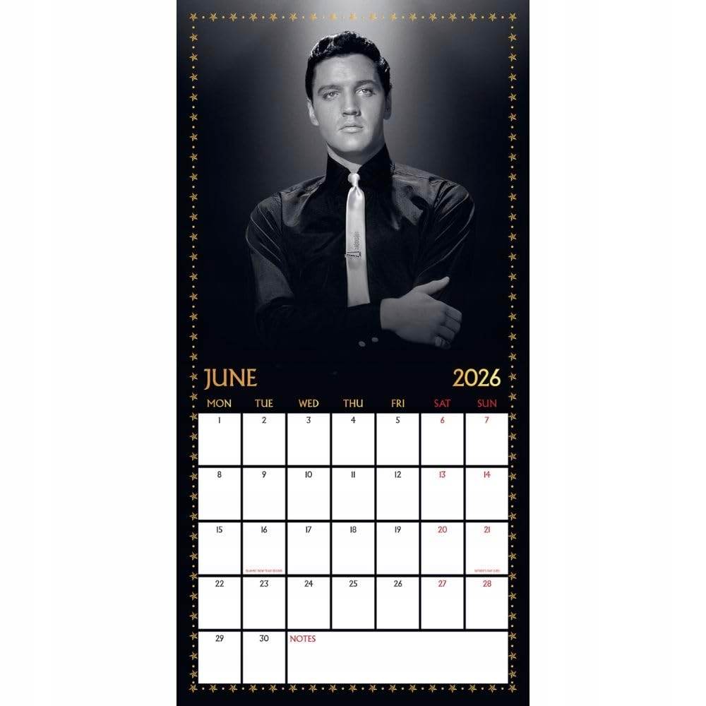 Вшануйте короля рок-н-ролу з офіційним календарем Площа Елвіса Преслі на 2026 рік! Кожен місяць містить класичні зображення Елвіса, а також просторі панелі дат для ваших зустрічей і нагадувань. Офіційно ліцензовано та надруковано на високоякісному папері — це обов’язковий атрибут для будь-якого шанувальника Елвіса!