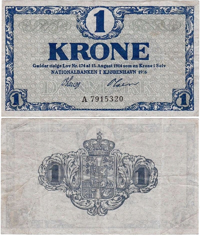 Данія, 1 крона 1916 р., серія A, вибір 12b