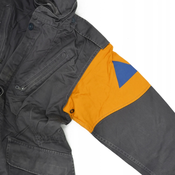 Манжети, які регулюються застібками або ґудзиками, і регулювання талії за допомогою шнура дозволяють регулювати куртку відповідно до індивідуальних уподобань користувача. Крім того, символ Цивільної оборони на обох руках підкреслює гордість від носіння цієї унікальної куртки, яка стане задоволенням не лише для військових, але й для всіх, хто любить атмосферу 80-х і вінтажну моду.