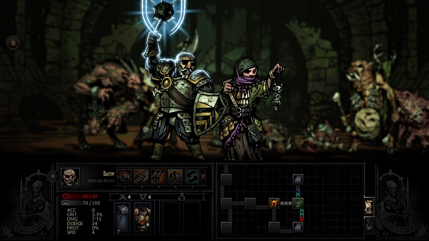 Набирайте, тренуйте та керуйте командою недосконалих героїв через зіпсовані ліси, забуті лігва, зруйновані склепи та інші прокляті місця. Ви будете боротися не тільки з неймовірно жахливими супротивниками, а й зі стресом, голодом, чумою та темрявою, яка ніколи не зникає. Розкрийте дивні таємниці та допоможіть своїм героям боротися зі страшними монстрами за допомогою інноваційної стратегічної покрокової системи бою.