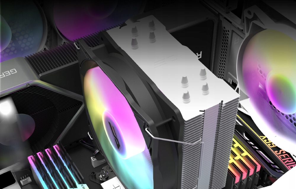 ✔️ Витончена естетика: білий дизайн кулера додає елегантності, а вдосконалене підсвічування ARGB дозволить вам регулювати зовнішній вигляд кулера для решти вашого обладнання та отримуйте цікаві візуальні ефекти.