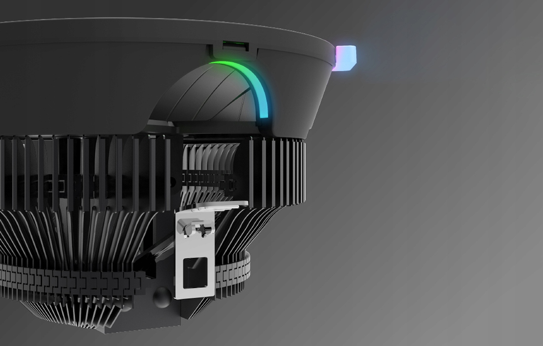 Вентилятор Darkvoid з радіатором привертає увагу своїм оригінальним дизайном і вражає своєю ефективною роботою. Охолодження розроблено та виготовлений із компонентів, які дозволяють оптимально розподіляти тепло та підтримувати температуру ЦПна максимально низькому рівні. Завдяки такому невеликому розміру він забезпечує потік повітря 62 CFM, створюючи мало шуму - лише 23,5 дБА, тоді як вентилятор san досягає швидкості 1800 об/хв під час дуже інтенсивної роботи. Darkvoid сумісний з вибраними моделями Intel і AMD, а кольорове підсвічування привертає увагу та надає продукту унікальний ігровий характер.