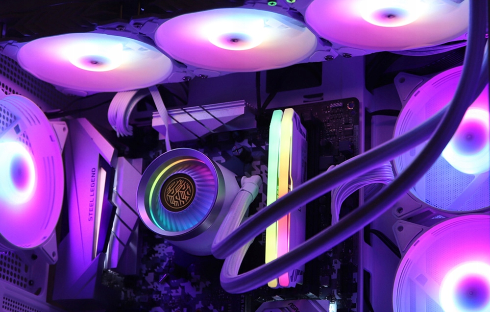 Мідна основа охолодження, гідравлічний підшипник, ефективний насос і міцні труби забезпечують ефективне розсіювання тепла та продовжений термін служби пристрою до 40 000 годин. Конструкція радіатора з міцного алюмінію гарантує оптимальний потік повітря та усуває ризик витоків.