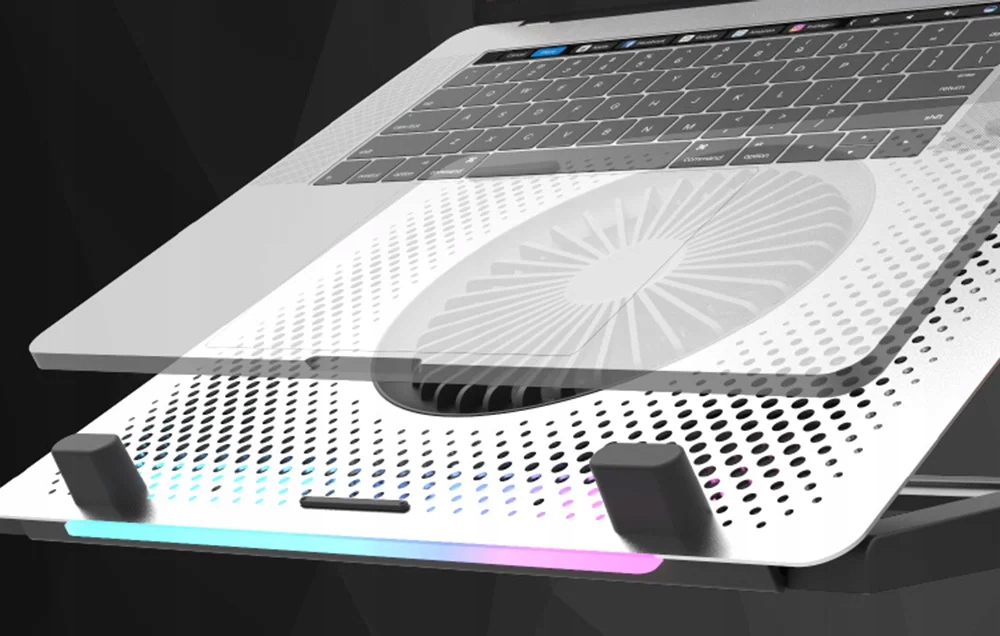 Підставка G200Plus не тільки охолоджує ноутбук користувача, але й підкреслює його стиль. Зручний перемикач дозволяє керувати RGB-підсвічуванням і вентиляторами, що дозволяє налаштувати зовнішній вигляд підставки під свої вподобання. Це непомітний, але приємний спосіб урізноманітнити свій простір.