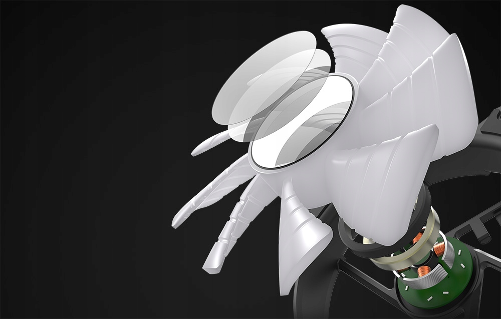 вітряки були розроблені з увагою до кожної деталі. Підшипники високої класу розрізняють термін служби до 30 000 годин. До 9 лез з плавною поверхнею забезпечують надійне охолодження, а гумові ущільнювачі зменшують вібрації і змушують вентилятори працювати спокійно.