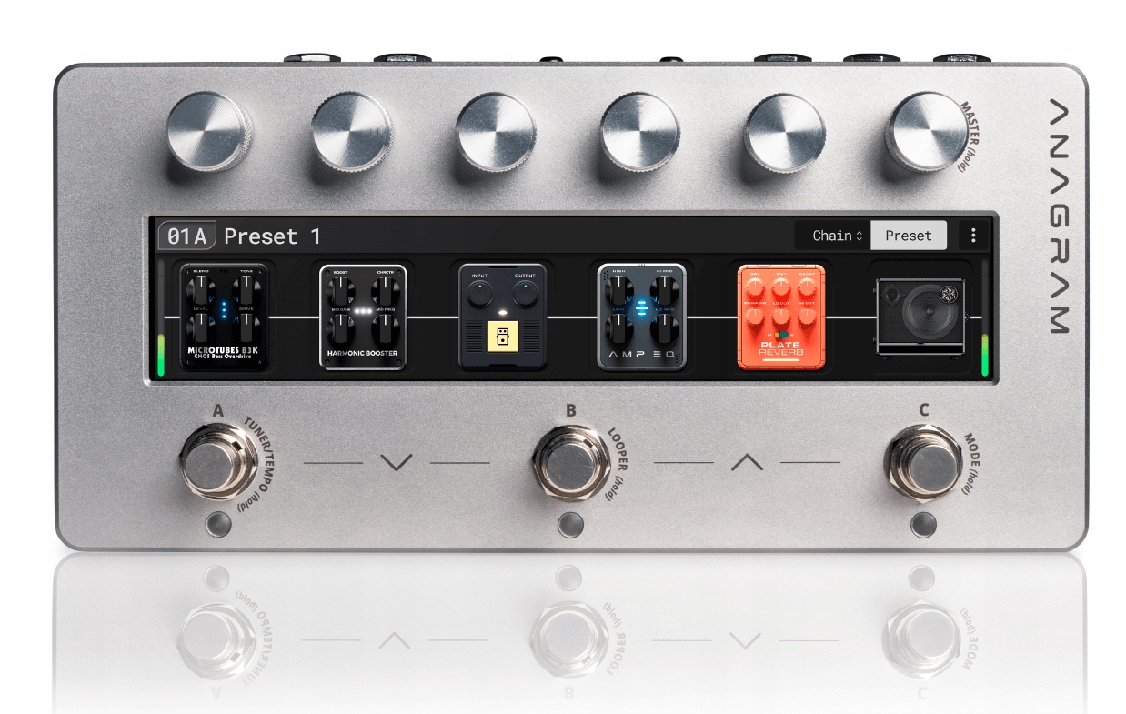 Шалено простий у використанні та неймовірно потужний - система попередніх налаштувань Anagram охоплює кожну деталь налаштування - від налаштувань ланцюжка сигналів і блоків до призначення ножних перемикачів і сцен. Перемикайтеся між інтуїтивно зрозумілими видами, щоб перевірити свій ланцюжок, редагувати прив’язки елементів управління або перейменувати стилі. Потім виберіть режим, у якому ваші ножні перемикачі зможуть переміщатися між налаштуваннями, перемикати окремі ефекти або переходити між сценами. Система пристроїв ANAGRAM розроблена, щоб бути максимально ефективною, але простою.