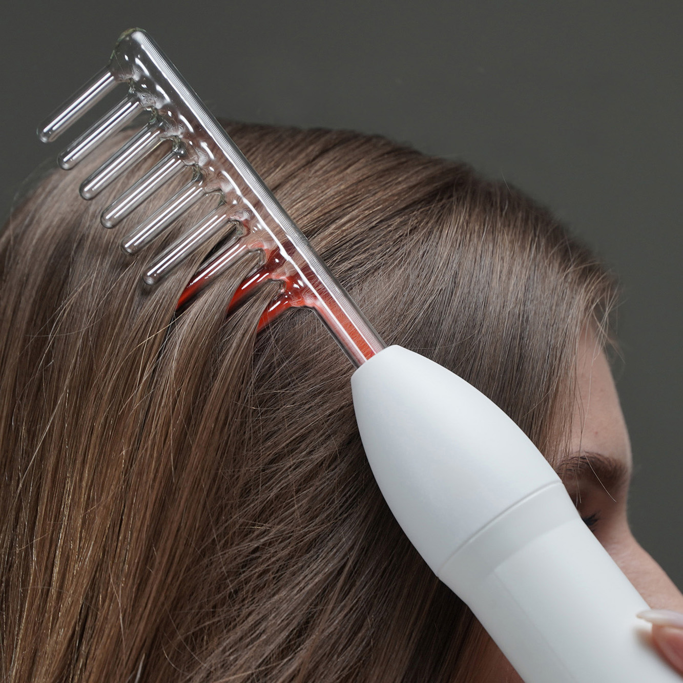 4 Основою терапевтичної та профілактичної роботи пристрою Дарсонізації є розряд коронки, який відбувається між поверхнею тіла та електродом. Під впливом імпульсів струму збільшує кровообіг, що призводить до поліпшення метаболізму насичення киснем та необхідних поживних речовин.Пристрій Darsonval оснащений трьома основними електродами: "універсальним" для делікатних точкових процедур, багатофункціонального для всього тіла і "гребінця" для волосся.