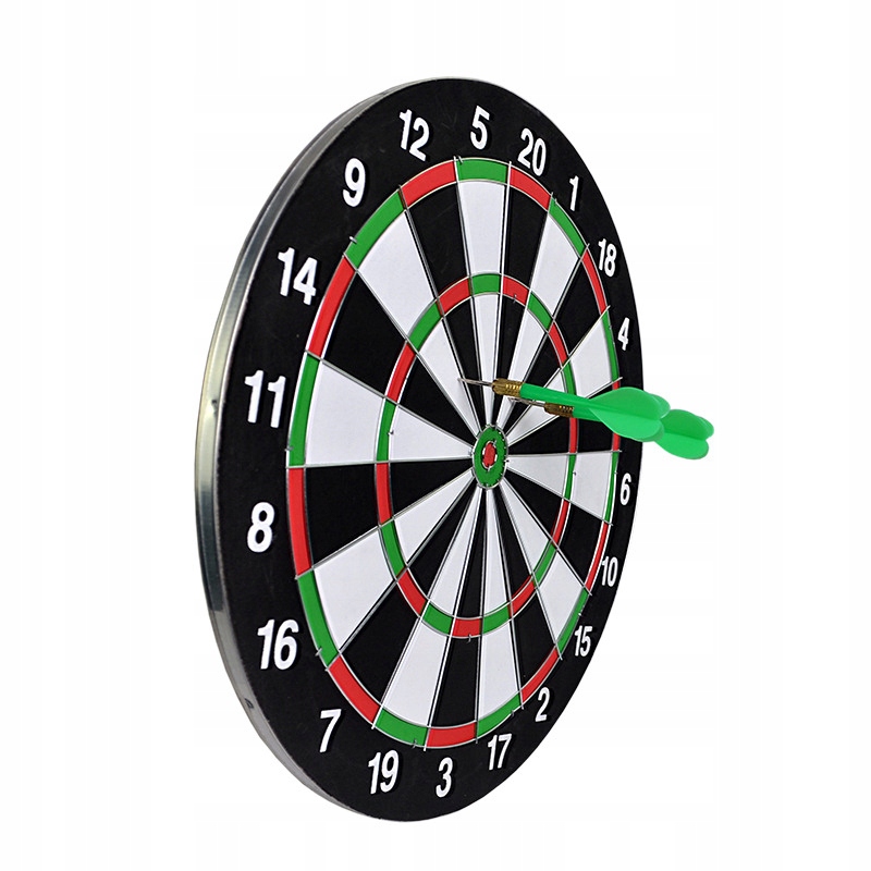 - Набір містить: двосторонній мішень для дротиків і 6 дротиків (3 червоних і 3 зелених)