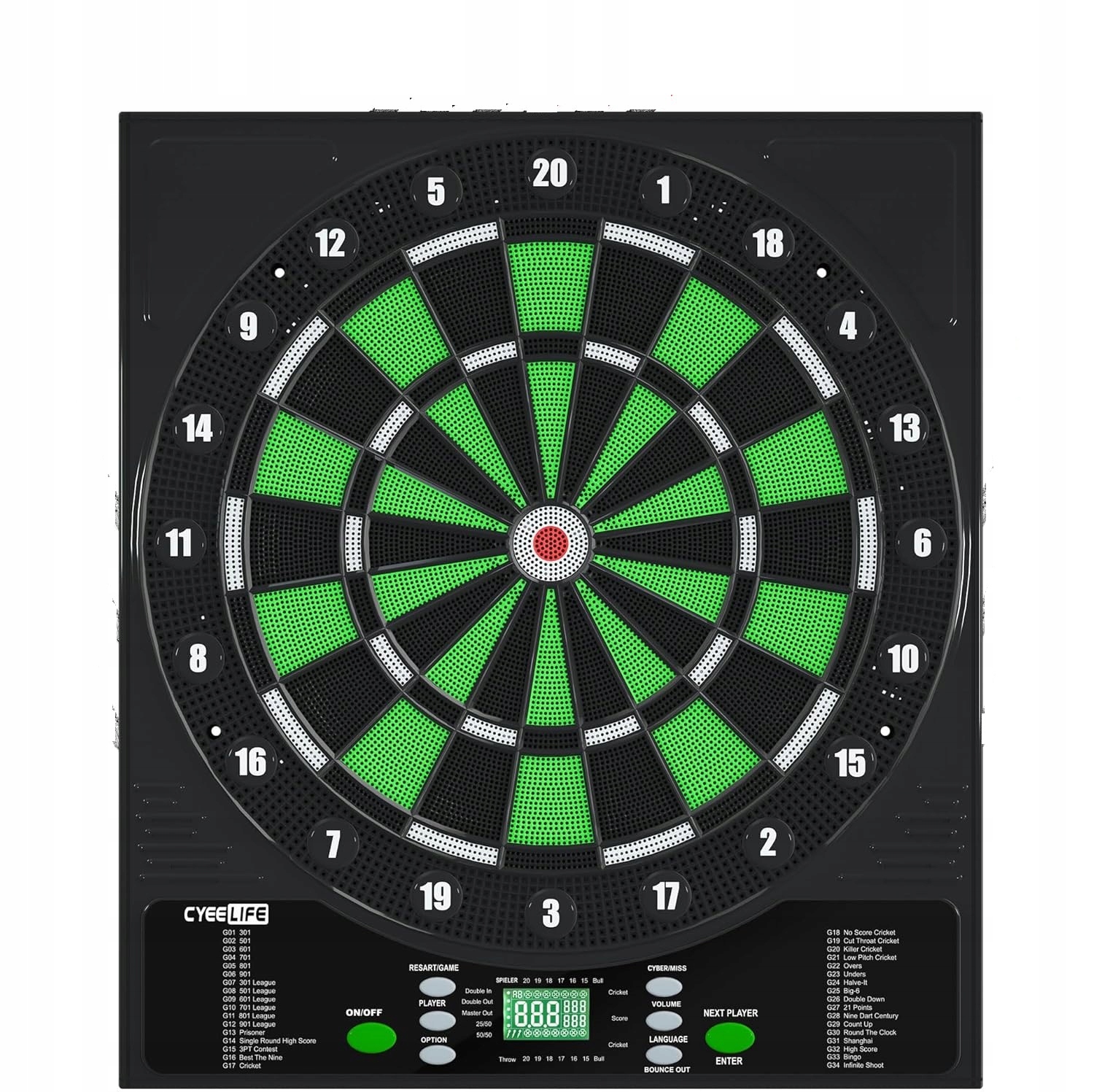 - Dart Cyleselife пропонує 34 колод і 355 варіантів (включаючи 301, крикет, цілодобово, високий бал)