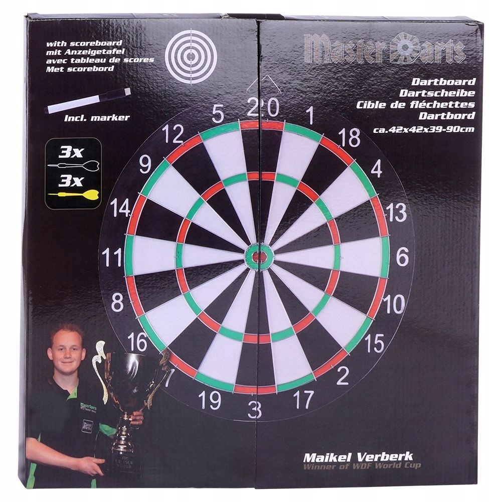 Двосторонній дартс із дротиками та маркером ідеально підходить для соціальної гри в дартс. Завдяки цьому ви зможете приємно провести час з друзями, а два циферблати подарують багато годин чудового задоволення. Щит відмінно підійде як вдома, так і в барі чи клубі. Дартс не працює від акумулятора, тому ви можете грати в нього в саду. Оригінальний продукт голландського бренду Master Darts. Вироблено відповідно до європейських стандартів.