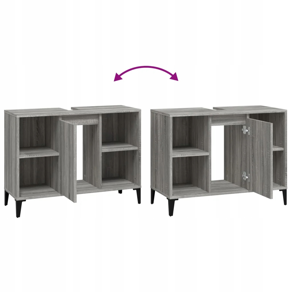 Ця тумба під умивальник стане чудовим доповненням до вашої ванної кімнати, додавши їй охайного та привабливого вигляду! Міцний матеріал: матеріал на основі деревини характеризується винятковою якістю та гладкою поверхнею, а також міцністю, стабільністю та стійкістю до вологи. Досить простору для зберігання: тумба під умивальник має 5 відділень і дверцята, що пропонує багато варіантів зберігання та більше місця у вашій ванній кімнаті. Верхня частина цієї тумби для ванної кімнати є ідеальним місцем для умивальника. Металеві ніжки: металеві ніжки привносять в інтер'єр спокійний, сучасний стиль, забезпечуючи при цьому стійкість столу. Легко очищається: поверхня шафи легко очищається вологою ганчіркою. Попередження: щоб меблі не перекинулися, їх необхідно прикріпити до стіни за допомогою кріплення, що входить у комплект. Корисно знати: щоб максимально спростити встановлення, до кожного продукту додається інструкція з експлуатації. Умивальник в пропозицію не входить.