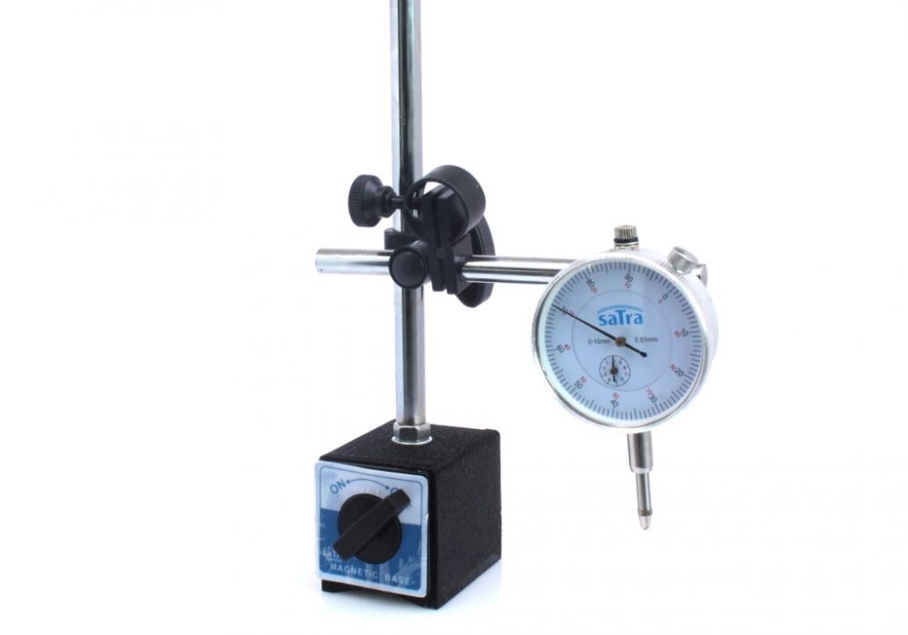 Універсальний інструмент для автомобільної та машинобудівної промисловості. Точка контакту виявляє найменше відхилення, зафіксоване на циферблатному індикаторі. Шарнірний штатив із магнітною основою забезпечує кращу посадку та більшу точність.
