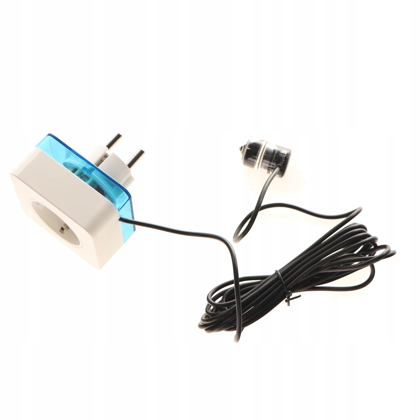 - Ви покладете око на кружку. Конічний видошукач всередині та датчик (ця частина з кабелем) зовні - датчик та видошукач магнетично встановлені. Виберіть відповідний рівень збору забруднення, тобто висоту встановлення очей. Відтепер це буде лінія безпеки перед заливанням. Вам не доведеться вирізати або просвердлити чашку скімеру. Ви встановлюєте все неінвазивно! Це серце системи. Виявляється і вимкнено і передає сигнали тривоги. Максимальне навантаження на сокет: 1100w