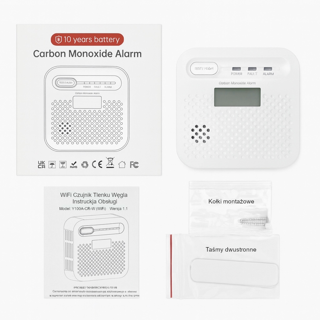 - Детектор чадного газу KLARIO WiFi з РК-дисплеєм (вбудована батарея - 10 років роботи)