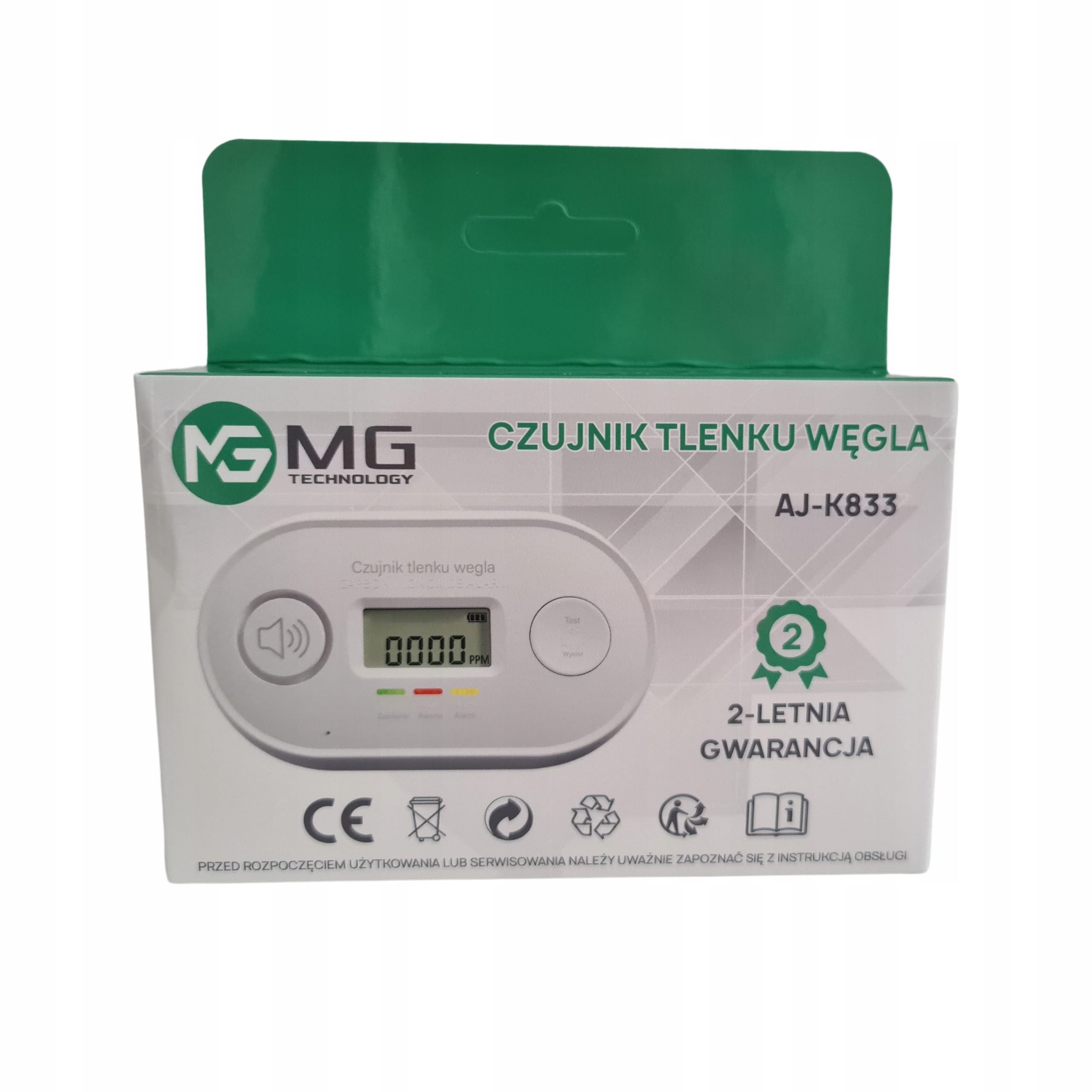 датчик окису вуглецю AJ-K833 -це сучасний пристрій, який забезпечує ефективний захист від тихої та невидимої загрози, яка є Chad (CO). Завдяки точному датчику та надійній технології виявлення, цей датчик швидко виявляє навіть незначну концентрацію оксиду вуглецю в повітрі, попереджаючи членів домогосподарств з потенційною загрозою. Комфортне джерело живлення для батарей 3XAA та тривалий термін гарантії датчиків (10 років) робить його пристроєм, який слід знайти у кожному будинку, квартирі, офісі чи іншому місці, де є ризик отруєння моносом вуглецю