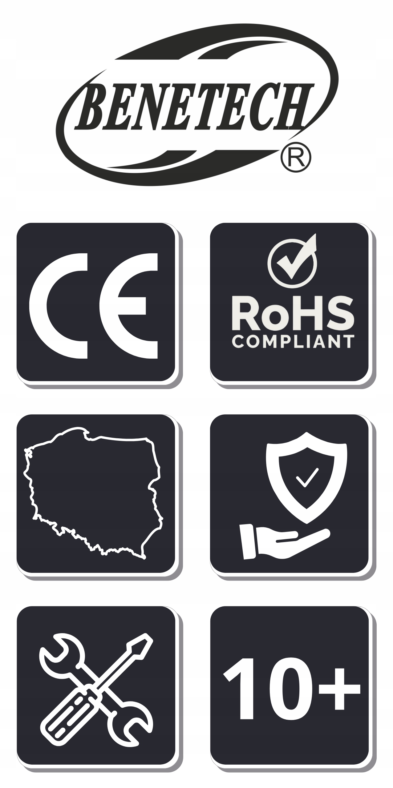 Усі пристрої, які ми пропонуємо, відповідають стандартам CE та RoHS.