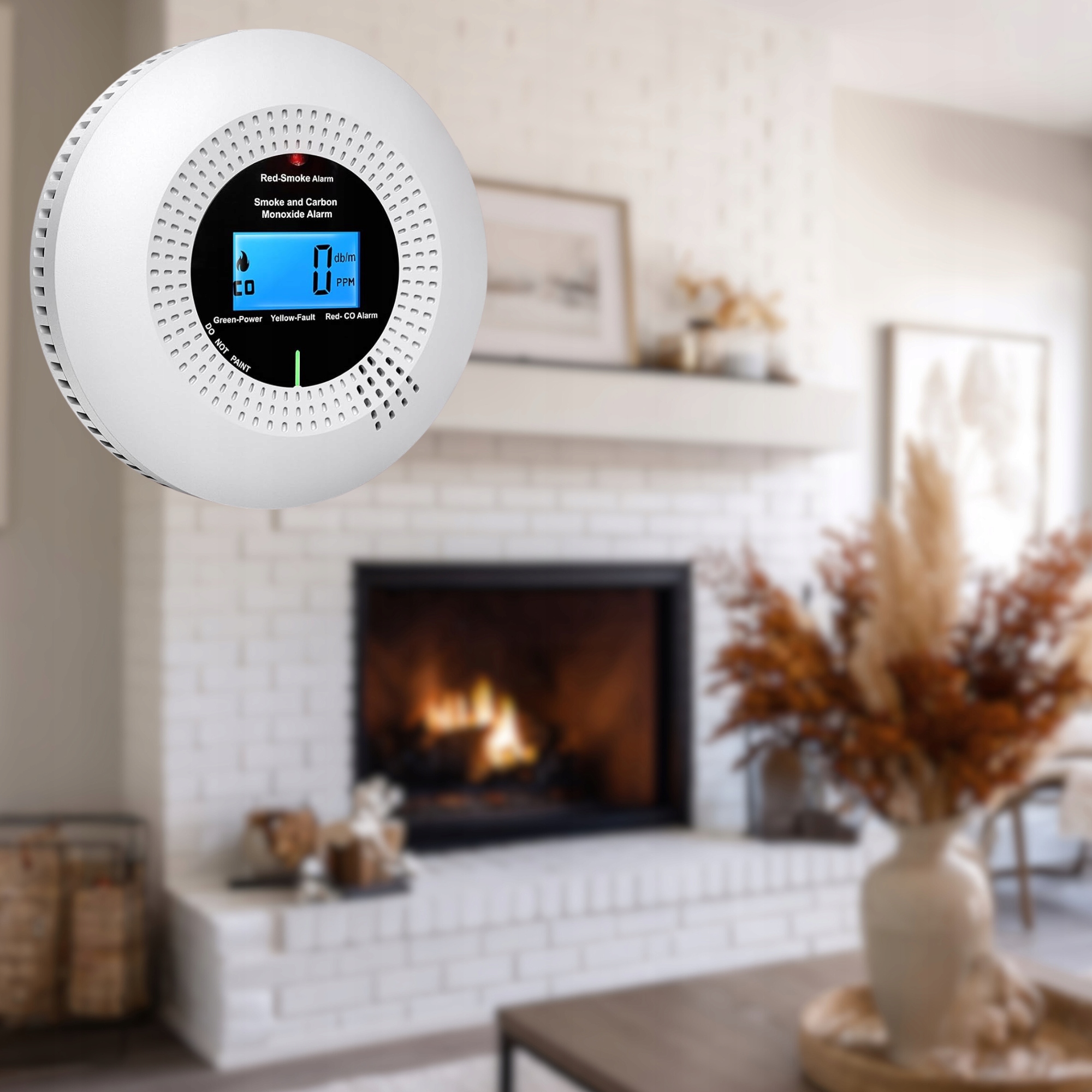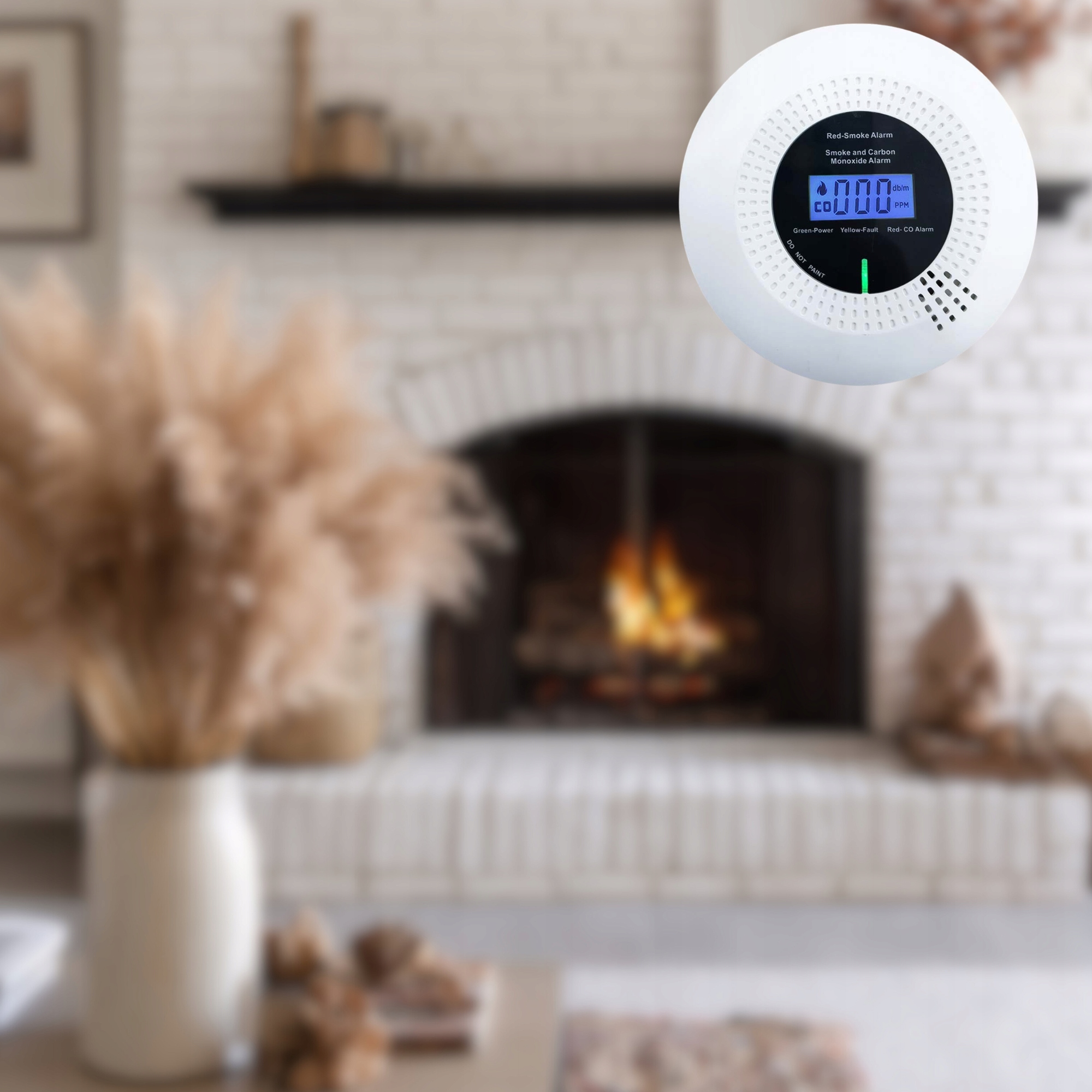 Датчик слід розміщувати поруч з пристроями, які можуть бути джерелом чадного газу або збудником пожежі, напр. камін, електричні або газові обігрівачі. При виявленні загрози датчик активує дуже гучний сигнал (85 дБ). Крім того, загоряється червоний світлодіод і подаються голосові команди. Будильник вимикається натисканням кнопки «Натисни для перевірки». Кнопка «Push to Test» також використовується для перевірки правильності роботи датчика.