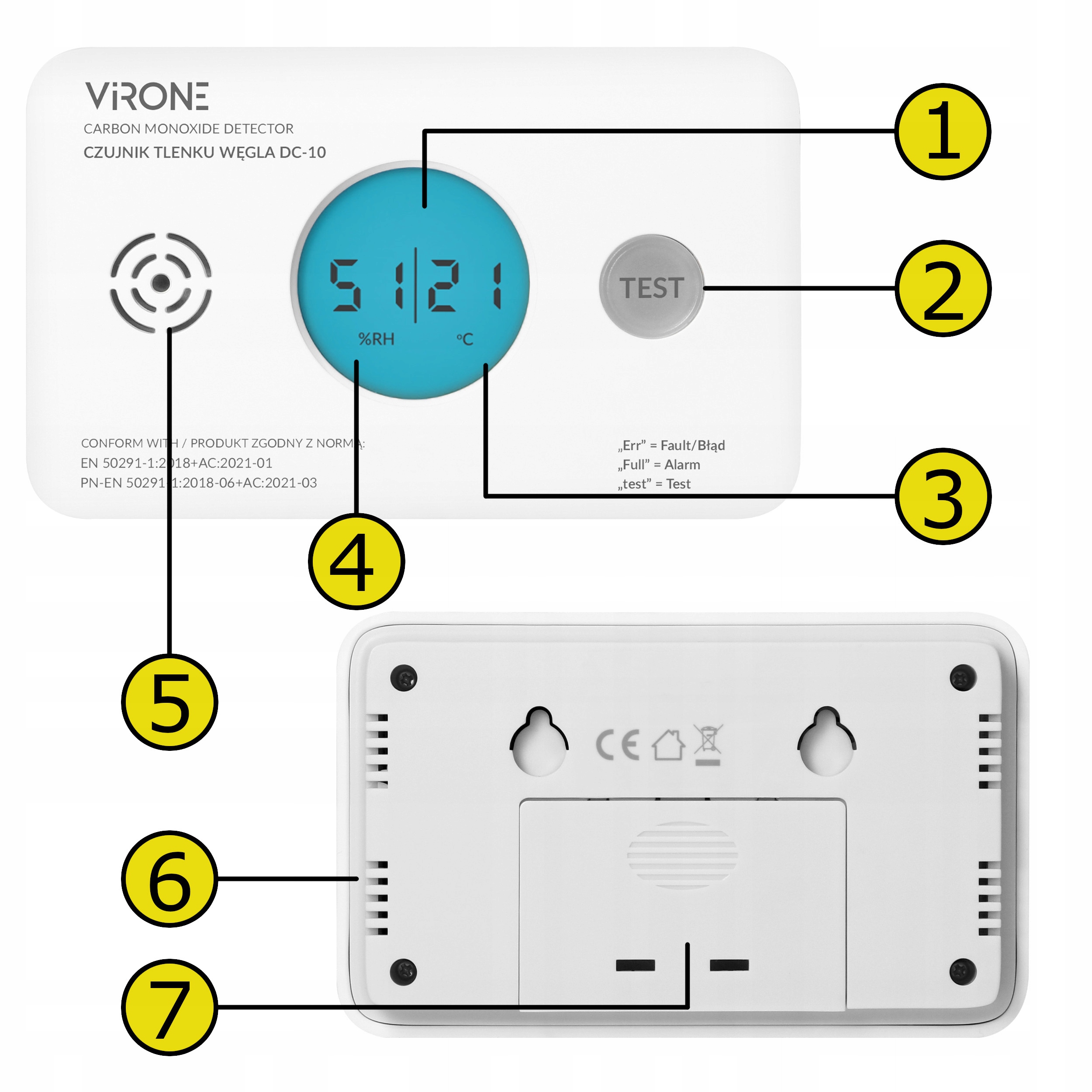 · ️-«Датчик» відповідно до EN 50291-1: 2018+AC: 2021-01 для домашніх детекторів монокусидів вуглецю · ️ ️ital