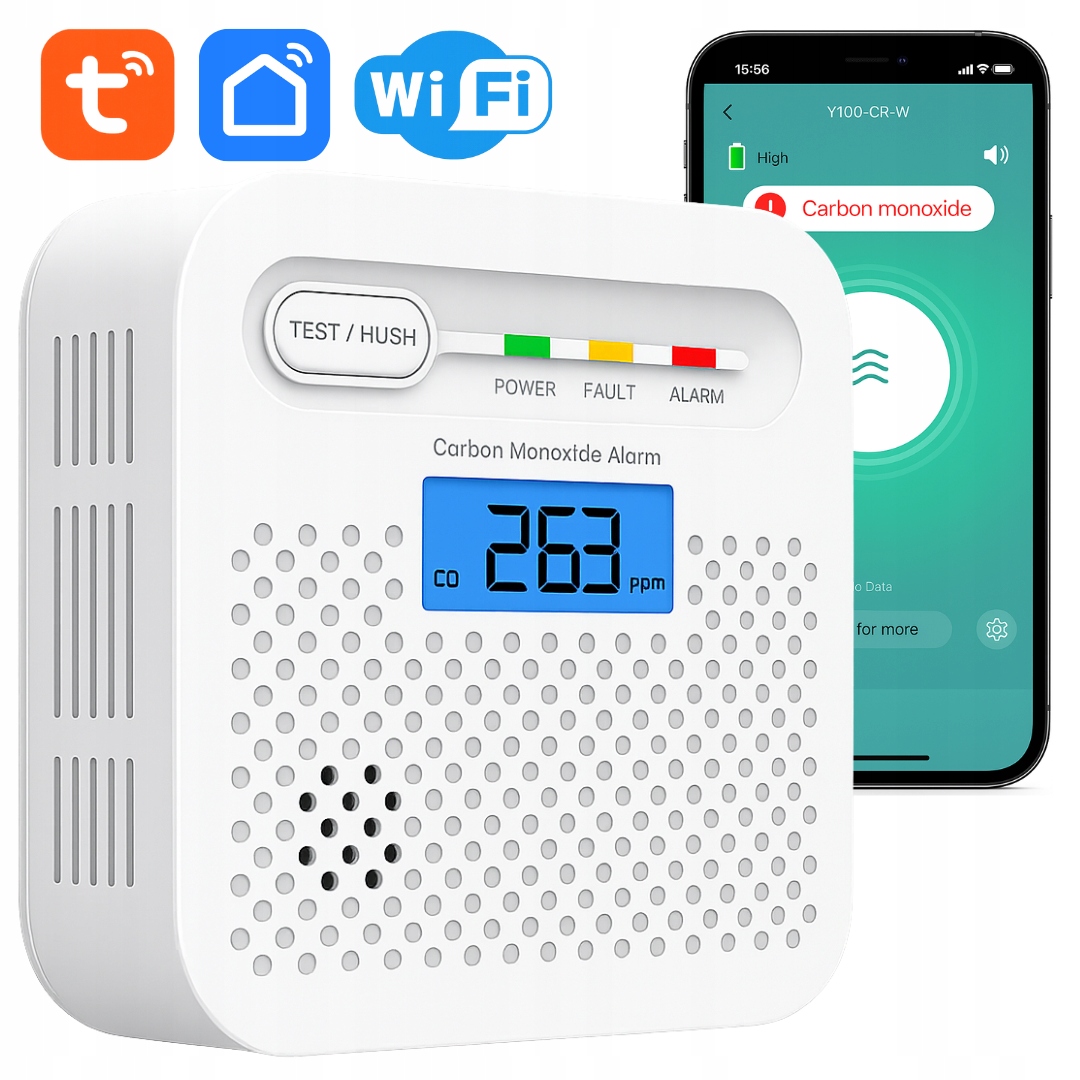 Датчик чадного газу CO Бездротовий Wi-Fi TUYA 10 років 85 дБ LCD
