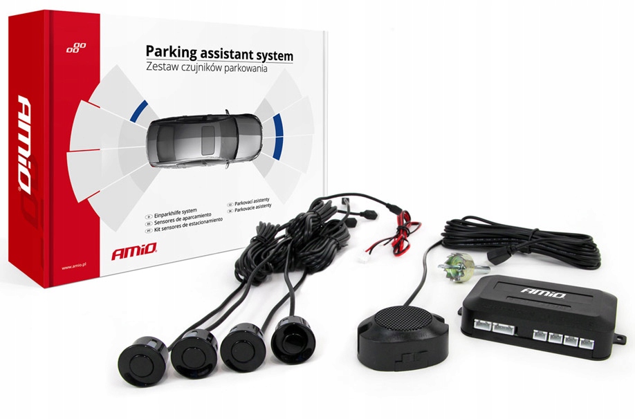 Power supply 12V Universal application 4-se sensors in the set signaling buzer Location of obstacle position Sensor diameter 22 mm black Обладнаний перемикачем вмикання/вимкнення , що дозволяє приглушити систему метод складання датчиків - ззовні свердло з різаком у наборі Інструкції для складання в польській вміст набору, як на фотографії нижче