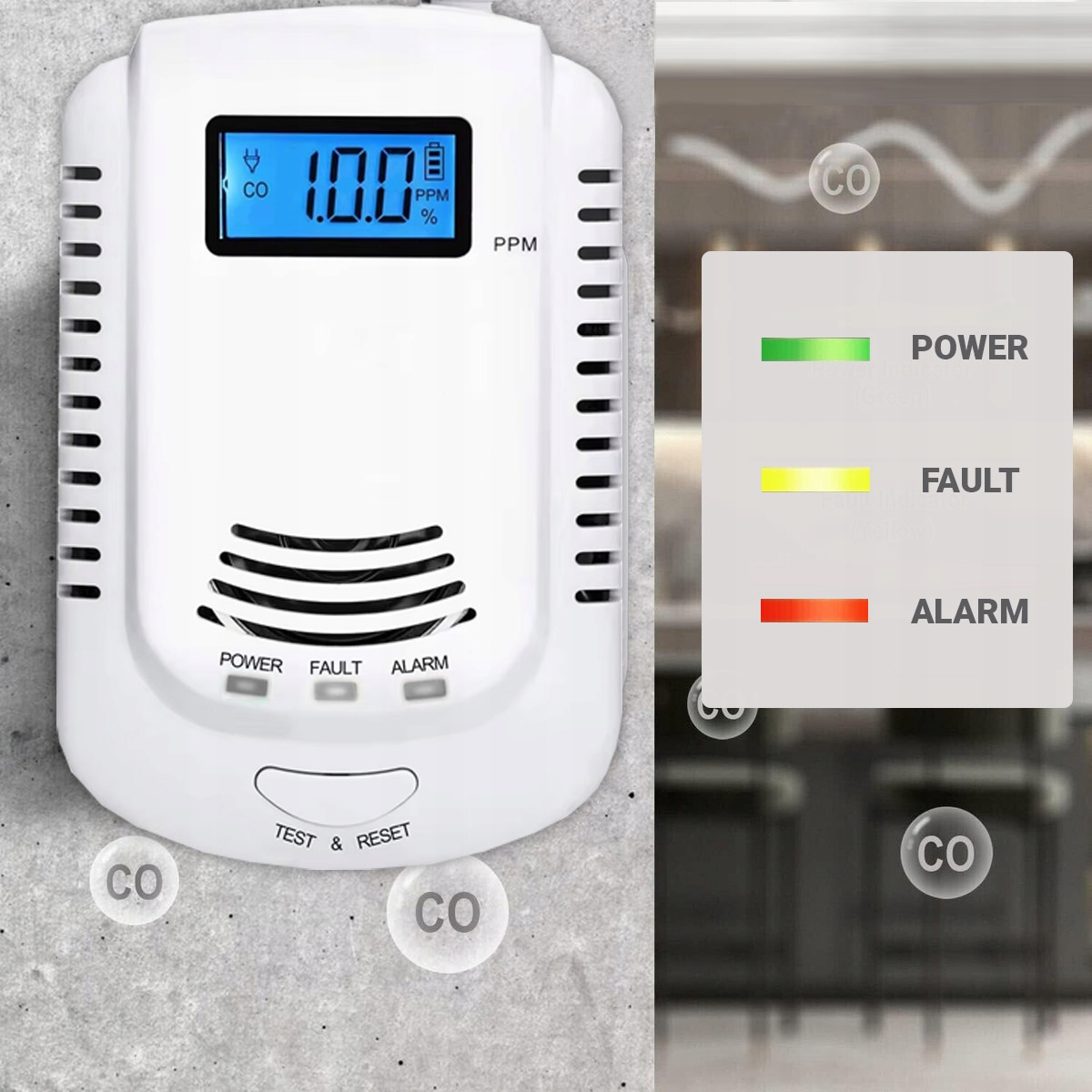 - Поріг сигналізації CO: 100–999 PPM