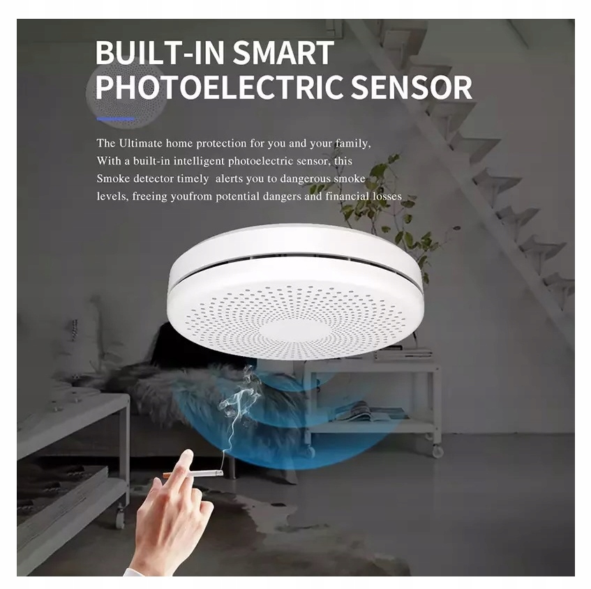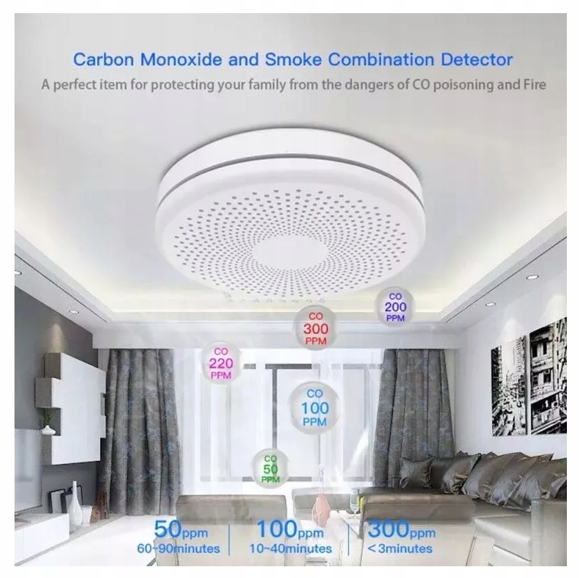 Інтелектуальний детектор використовується для виявлення диму та для виявлення Чада . Якщо концентрація диму або чада перевищує певне значення, сигнал тривоги негайно надсилається на додаток на вашому телефоні, і пристрій починається з світла та звукової сигналізації.