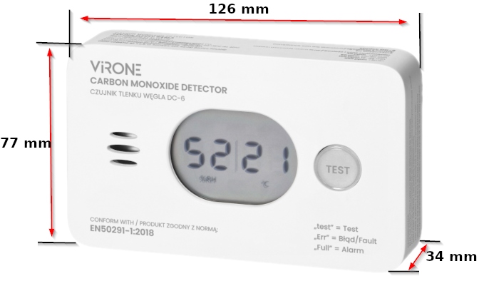 ДЕТЕКТОР ОКИСУ ВУГЛЕЦЮ (CO2) Virone DC-6 створено для постійного моніторингу приміщень на наявність окису вуглецю (CO) повітря.