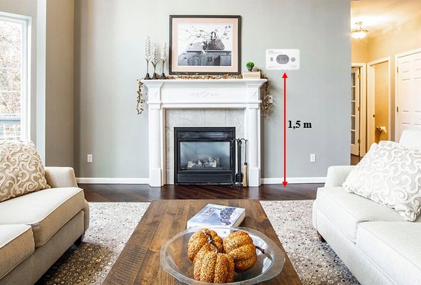Наявність чадного газу супроводжується великим вмістом вуглекислого газу, тому детектор чадного газу має бути встановлено відносно низько - на висота прибл. 1,5 мі на відстані хв. 1,5 м від пристроїв, що працюють на паливі. Завдяки правильному встановленню тривога спрацьовує, коли концентрація CO: