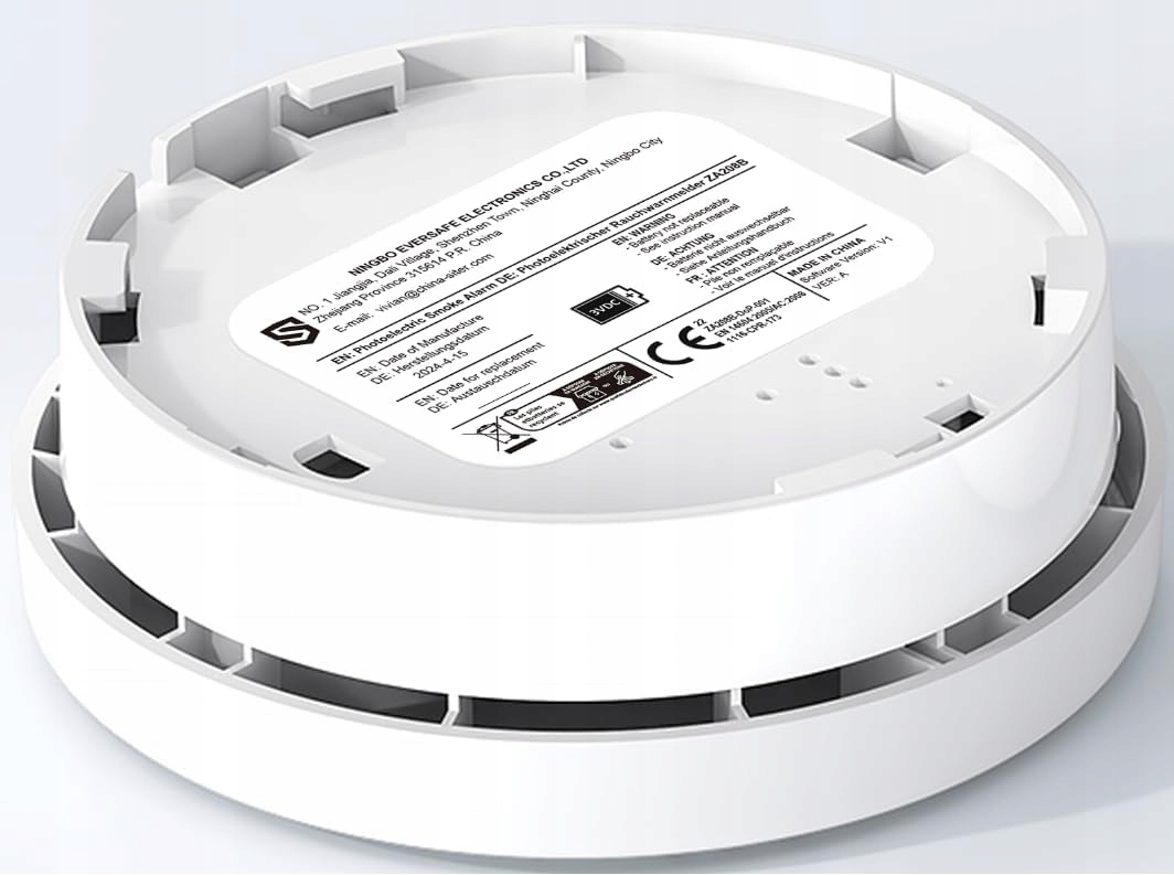 Фотоелектричний детектор диму зі змінною батареєю, що відповідає стандарту EN 14604