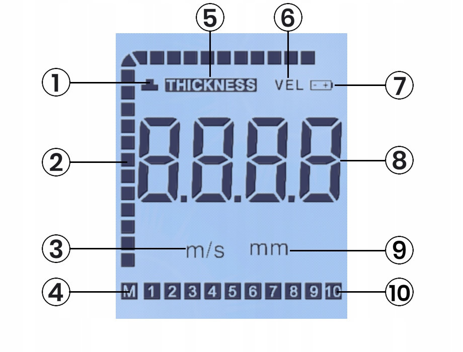 - Прилад підходить для вимірювання матеріалів які єхорошими провідниками ультразвукутакі як метал, пластик, кераміка, скло тощо.