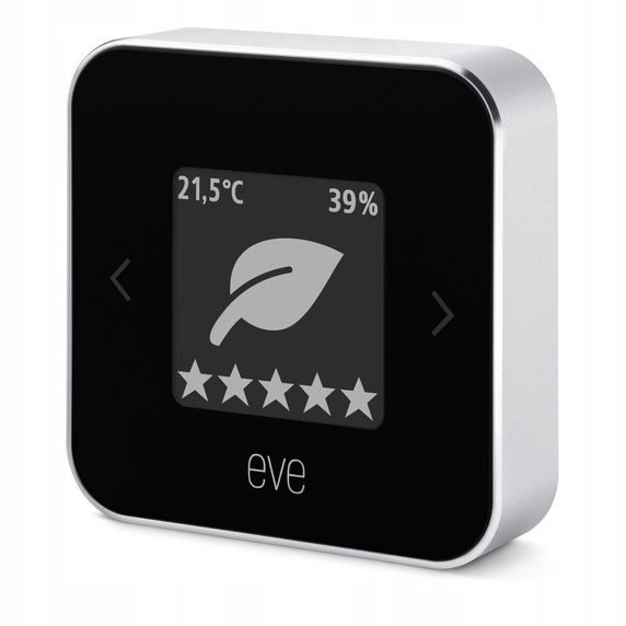 дозволяє швидко перевірити якість, температуру та вологість повітря у вашій квартирі на вашому iPhone та iPad. Пристрій відрізняється компактними розмірами і відмінною якістю збірки. Датчик Eve Room сумісний із технологією HomeKit, використовує новітні надточні датчики та має настроюваний дисплей у тонкому алюмінієвому корпусі. Тепер у вас під рукою вся найважливіша інформація, тож ви можете приймати рішення, які будуть корисними для вашого здоров’я.