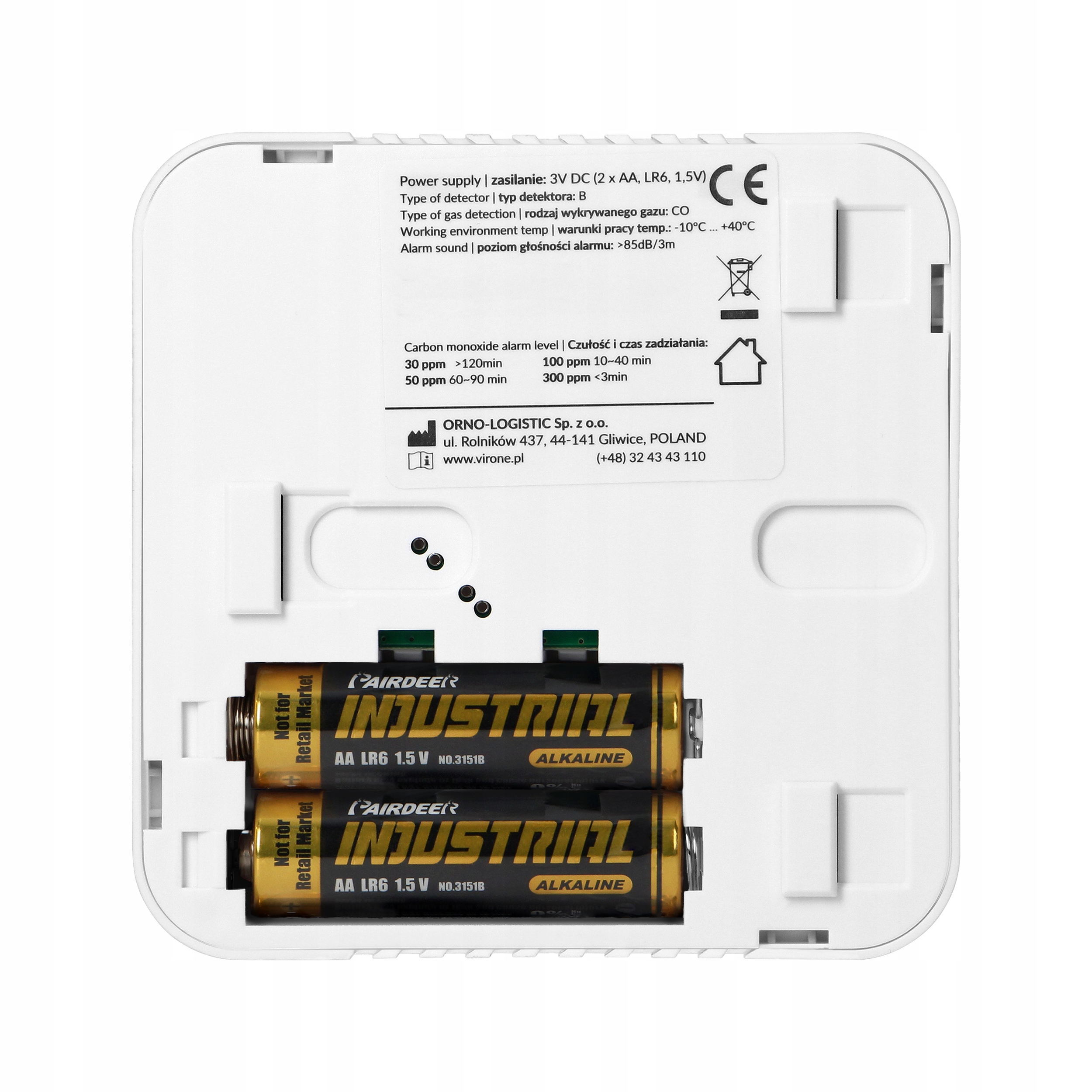 Акумуляторний датчик чадного газу Детектор чадного газу, термін служби датчика 10 років - Virone DC-11