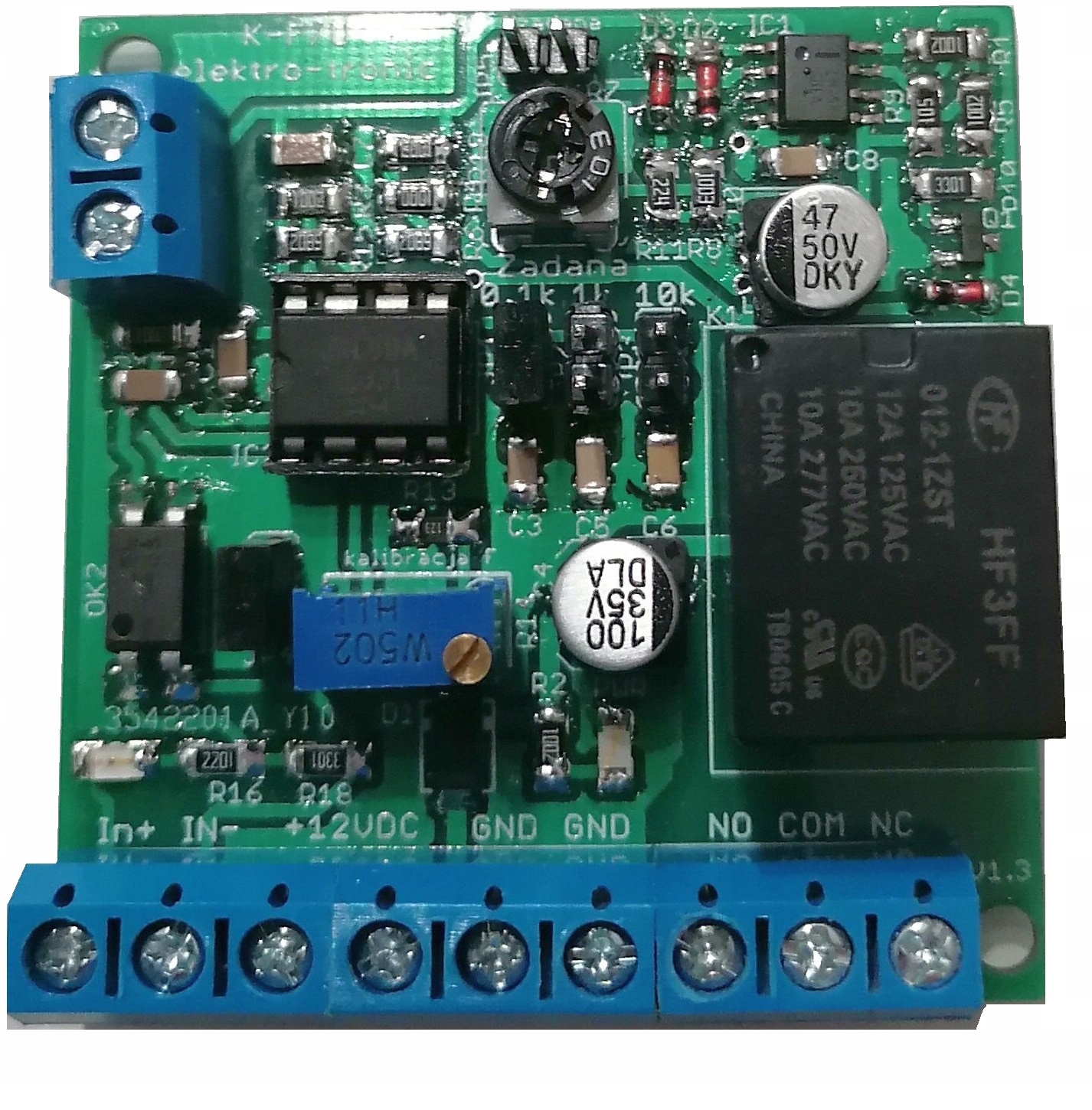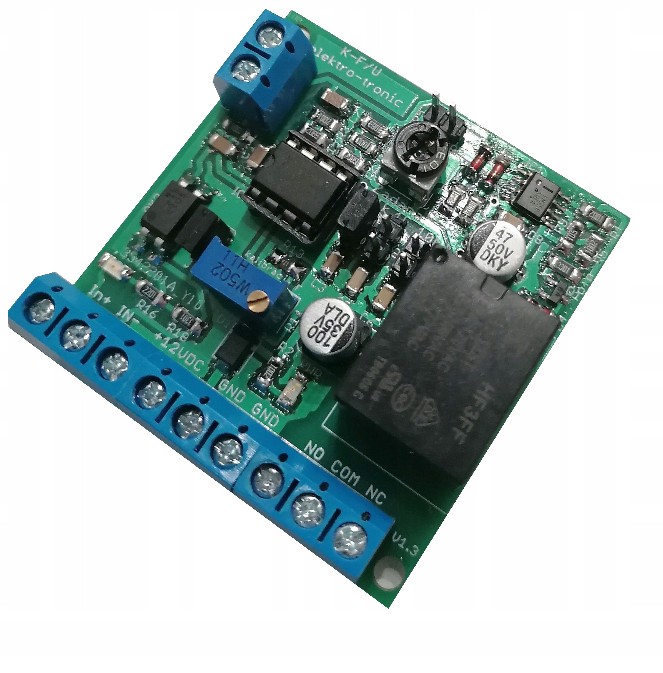 Використання потенціометра можна встановити на якій напрузі (тобто частота, реле увімкнеться). Затримка вмикання та вимкнення становить приблизно 2 с, що зменшує реакцію на короткі імпульси.